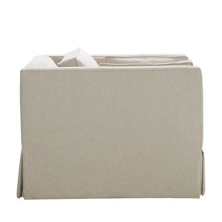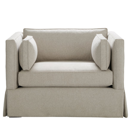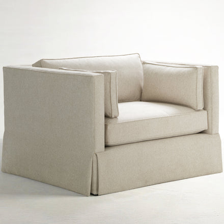 The Grand Swivel Chair offers a modern take on classic comfort, featuring sleek lines, a tailored skirt, and 360-degree swivel functionality. Its equal-height back and armrests contribute to its cohesive and elegant design, while its plush seating ensures maximum comfort. Perfect for creating a cozy reading nook or adding dynamic versatility to your living space, the Grand Swivel Chair is as stylish as it is practical.