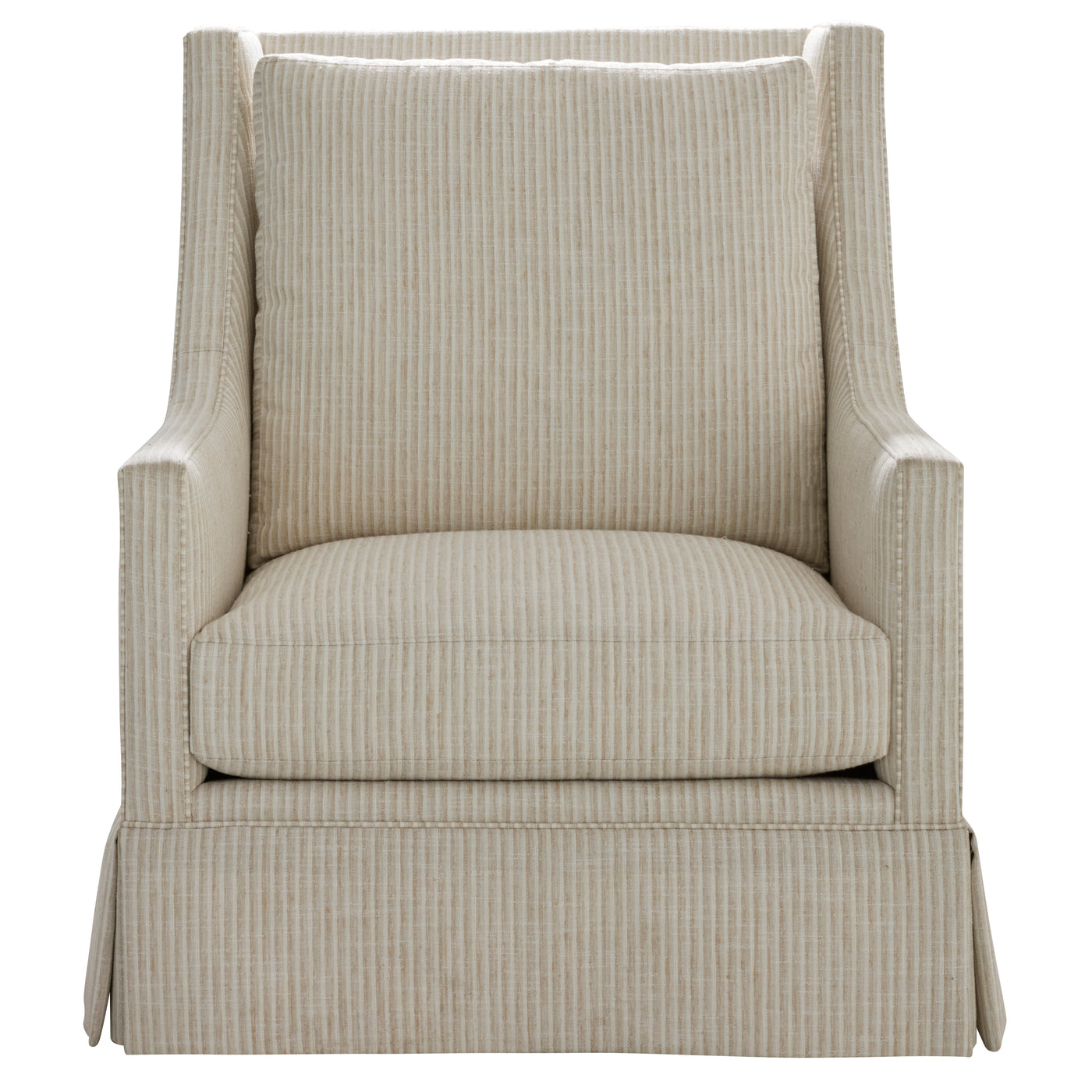 The Helena High Back Chair brings tailored sophistication to any indoor living space. Designed with a stately silhouette, this chair features a structured, upright form that offers exceptional support—making it an excellent choice for taller individuals. A full and neatly pressed skirt at the base adds a refined touch, concealing the feet for a clean, seamless appearance. Upholstered in the fabric of your choice, the Helena Chair marries comfort with timeless style.