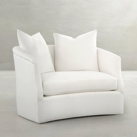 Introducing the Laine Swivel Chair and a Half — a generously proportioned seating solution that combines comfort with functionality. Its extra-large and extra-wide design ensures ample space, making it ideal for taller individuals or for those who love to curl up with a good book. Crafted with a 360-degree swivel feature, this chair offers unmatched versatility, perfect for dynamic and modern living spaces. The deep seat invites relaxation, while the chair's handmade construction in North Carolina speaks to its quality and durability. With a design that's as comfortable as it is stylish, the Laine Swivel Chair and a Half is an inviting addition to any home.