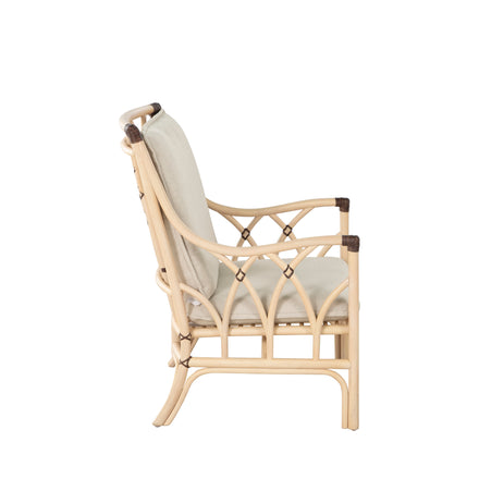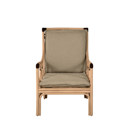 Milano Natural Rattan Leather Lounge Chair - Vienna Custard Black