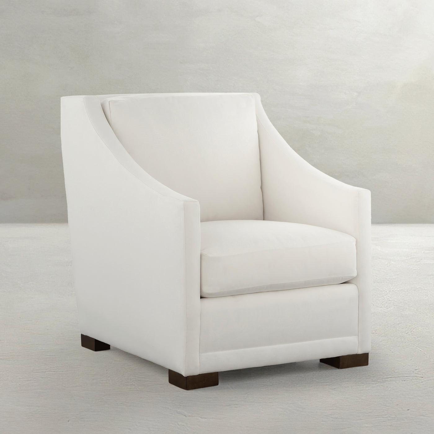 - Narrow swoop arms sweep gracefully from the high back for timeless elegance.