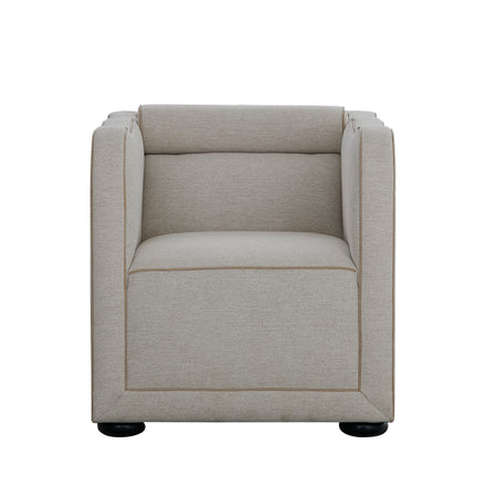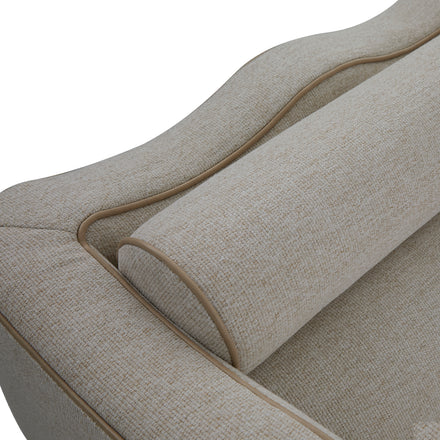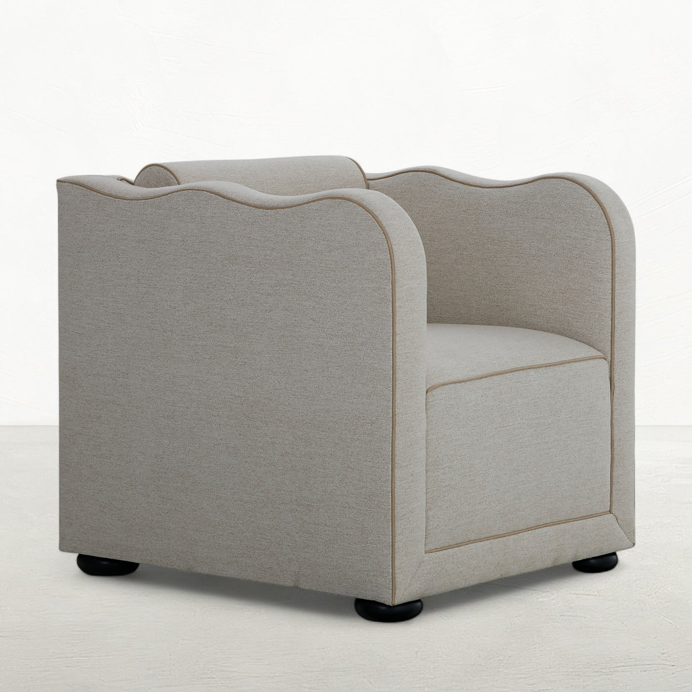 The Olera Chair translates the collection’s modern artistry into a single, statement seat. Its high, undulating back and tight upholstery deliver a striking silhouette that feels equally at home in contemporary or transitional spaces. Attached bolster cushions enhance comfort, while circular wooden feet anchor the design with understated balance. Both sculptural and inviting, it’s a versatile accent or companion to the Olera Sofa or Loveseat.