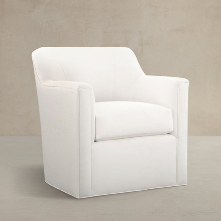 The Ozzy Swivel Chair, proudly handcrafted in North Carolina, is a statement piece that effortlessly blends comfort with modern design and added mobility. Its tightly tailored lines and compact silhouette make it a versatile addition to any living space. With 360-degree swivel functionality, it offers flexibility while maintaining plush cushioning and subtle curves that invite you to sit back and relax. The attention to detail is evident in its smooth upholstery and refined craftsmanship, ensuring a durable and stylish piece for years to come.