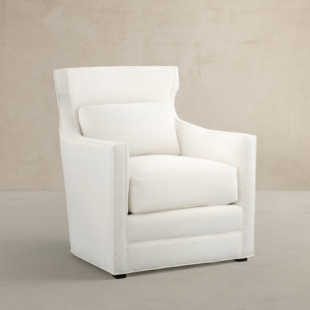 The Ward Chair is a blend of minimalist design and timeless elegance. This casually elegant style is perfect for transitional settings with a slightly bowed back, slender square arms, and plush cushions, snuggly comfort is guaranteed. Perfect for both living areas and accent seating, the Ward Chair adds a touch of refined simplicity to any space. Customize your chair with a choice of fabrics from our wide selection available in our retail stores, ensuring it seamlessly fits with your home decor.