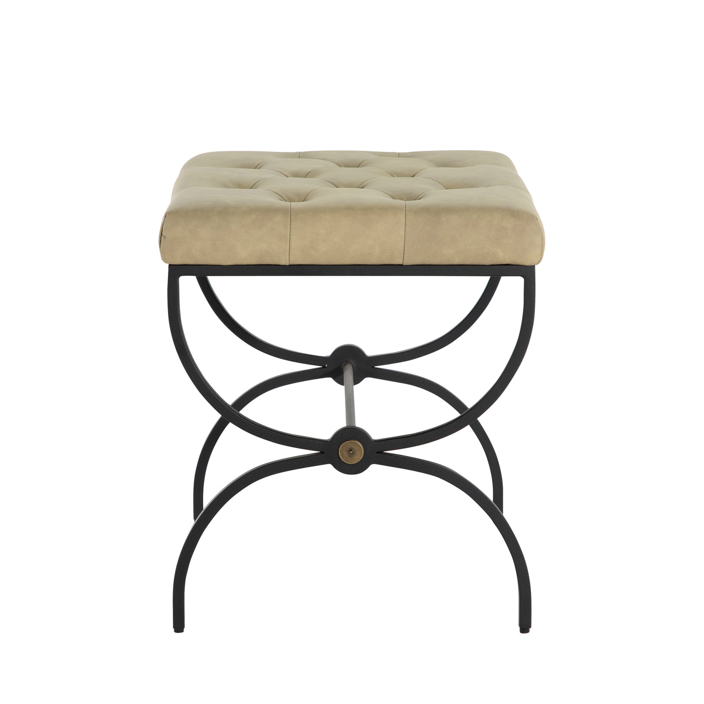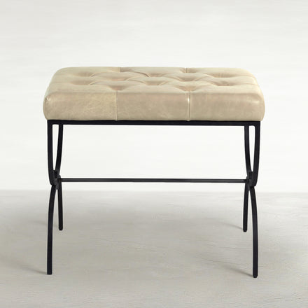 Galvin Leather Iron Ottoman - Light Gray Textured Black Brushed Brass