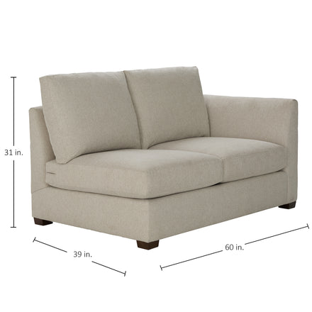 The Burk Right-Arm Facing (RAF) Loveseat combines compact design with luxurious comfort, making it an excellent choice for your modular sectional setup. With plush cushions, a supportive high back, and a right-arm configuration, this loveseat is a versatile addition to your custom seating arrangement. Whether paired with other Burk pieces or used on its own, the Burk RAF Loveseat brings style, flexibility, and comfort to your living space.