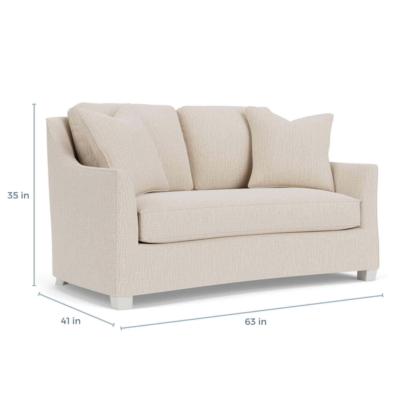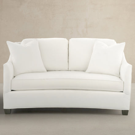 The Baldwin Settee offers a contemporary twist on traditional European designs, blending soft curves with precise tailoring. Its distinguished profile features elegantly sloped arms that pay homage to classic forms, while the down-filled cushion ensures a plush, comfortable seating experience. Unique to its design is a subtle seat curve, creating a narrower middle that enhances the settee's sophisticated silhouette. This piece marries timeless elegance with modern comfort, making it a luxurious addition to any living space. Visit your local store to explore the nailhead patterns available with the Baldwin collection and experience its comfort and design firsthand.