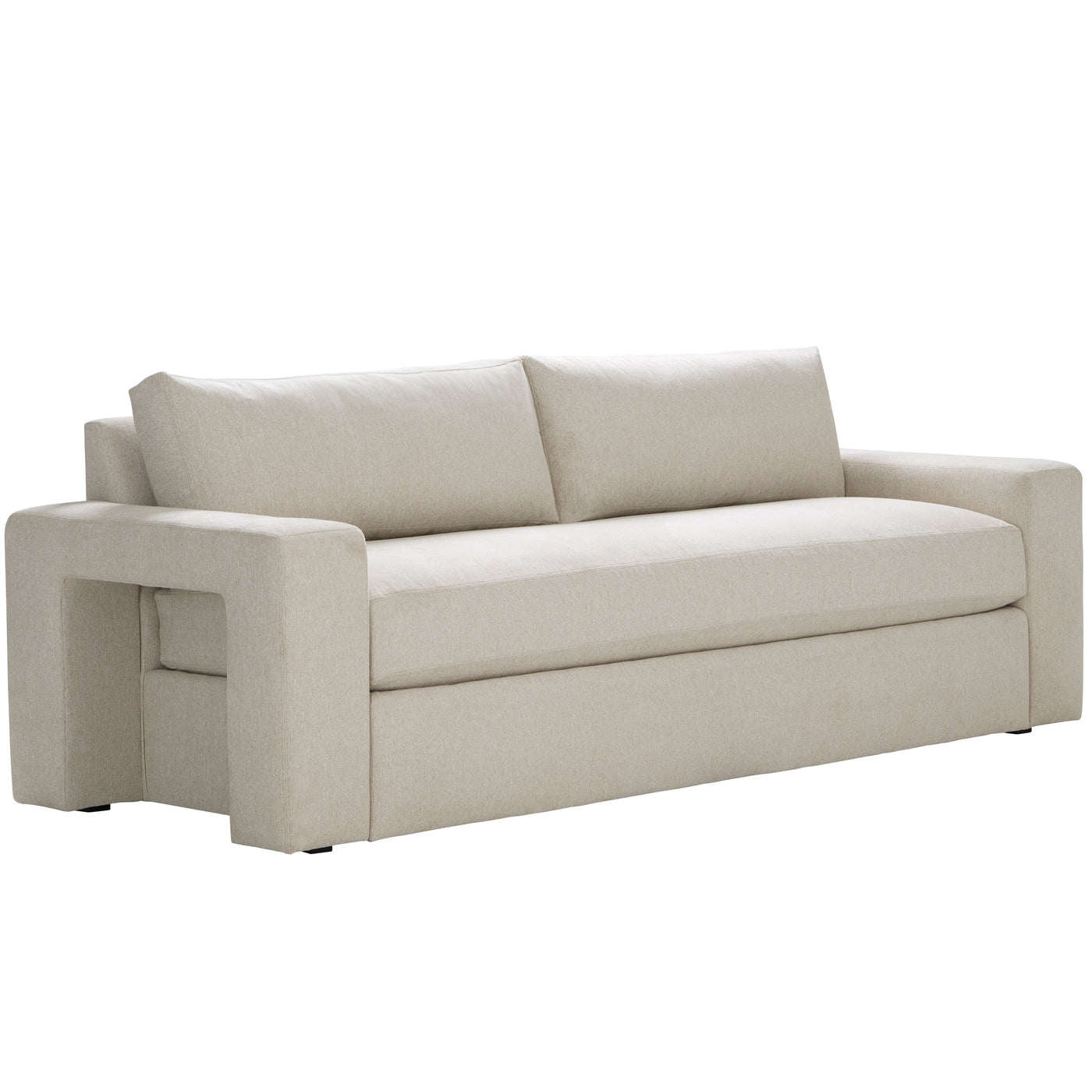 The Hutchens Sofa is a statement piece that brings contemporary elegance and exceptional comfort to your living space. Its bold, geometric design is highlighted by clean lines and a minimalist aesthetic, making it an ideal choice for modern interiors. The generous proportions and plush cushions offer a welcoming and cozy seating experience, perfect for relaxing with family and friends. Crafted with a strong and durable frame, the Hutchens Sofa ensures long-lasting support and stability. Customize your sofa by choosing from our extensive fabric selection available in our retail stores. This allows you to tailor the piece to your unique style and decor preferences, creating a sofa that is truly yours. Whether you prefer a subtle, neutral tone or a bold, vibrant hue, the Hutchens Sofa can be designed to complement any interior design scheme.