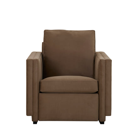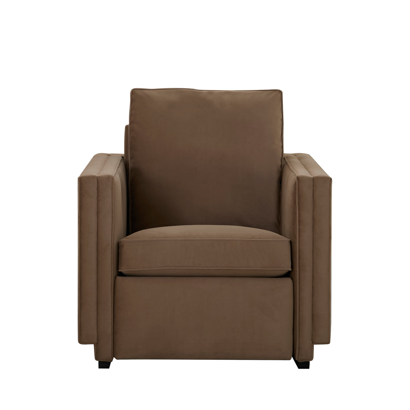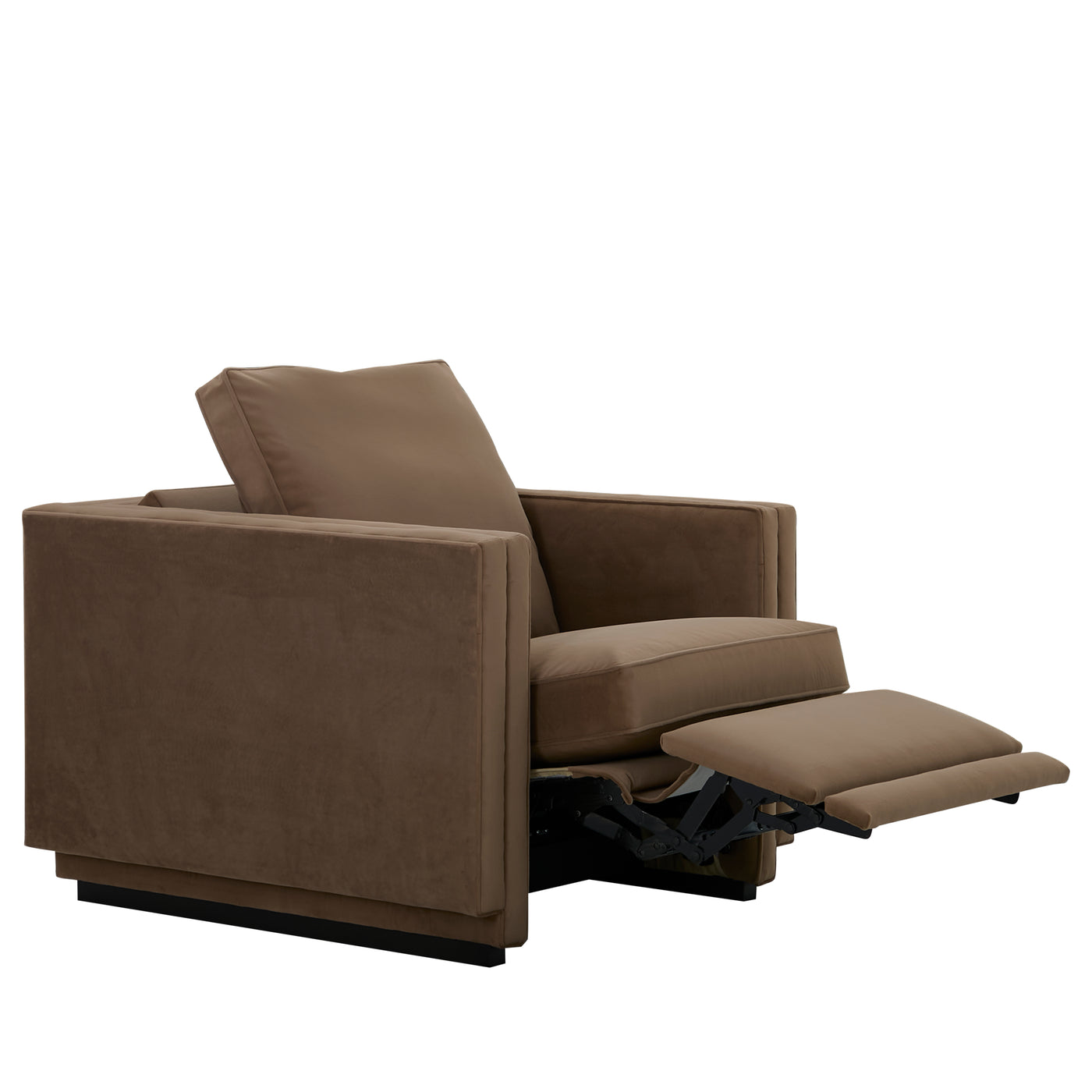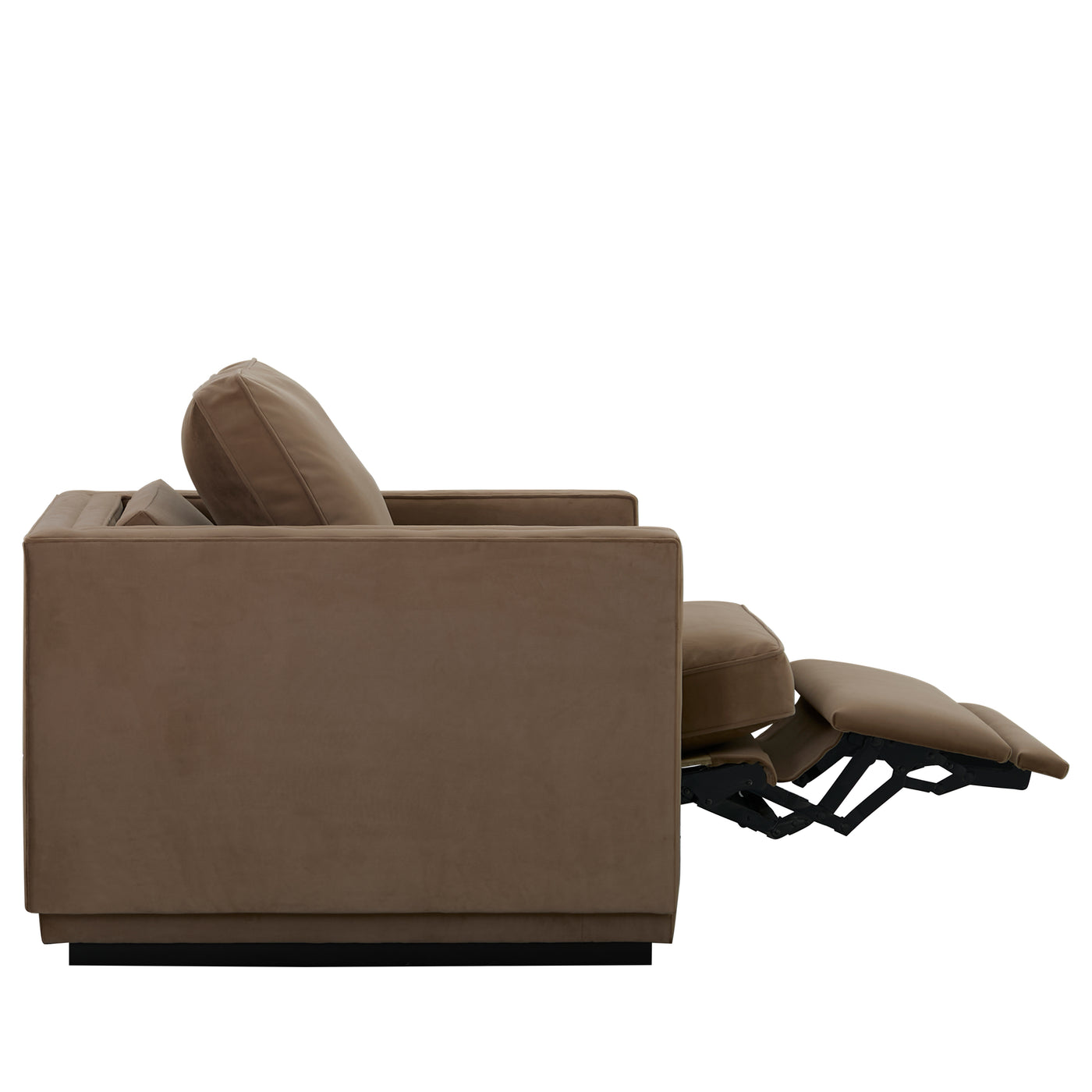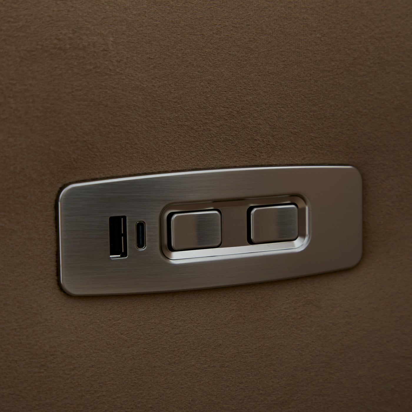 The Deco Incliner merges clean architectural lines with luxurious, modern comfort. With a simple press of a button, this power-operated incliner glides smoothly into a relaxed position—tilting the back and extending the footrest for effortless lounging. Unlike a traditional recliner, the incliner’s mechanism allows it to recline in place without moving away from the wall, offering maximum comfort even in compact spaces. Its double-layer vertically cushioned arms add both structure and softness, giving a subtle nod to linear modern design, while the dual wooden bases beneath the arms anchor the piece with a grounded elegance. Plush, seat and back cushions ensure deep comfort, and the built-in USB port makes it easy to charge your devices as you unwind. Fully upholstered and tightly tailored, the Deco Incliner delivers refined style with everyday functionality.