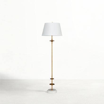 Avery Aged Brass Beige Marble Base Floor Lamp - 70.75 in. H