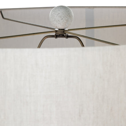 Adapter type G - BS 1363-5 Adjustable extension arm No Ampere requirement 1 Articulating lamp head No Base general color White Brand Gabby Bulb included No Certifications and compliance Prop 65 Lead, UL Dry Country of origin CHN Contract viable Yes Dimmable No Finial shape Sphere Finish family White Hardware finish Brushed Copper Harp finish Brushed Copper Harp style Harp Has diffuser No Has shade Yes Light direction Ambient Material Fabric, Iron, Resin Natural material disclosure Natural, Handmade Number of bulbs 1 Power source 2 Prong Plug Removable shade Yes Switch type Foot Switch