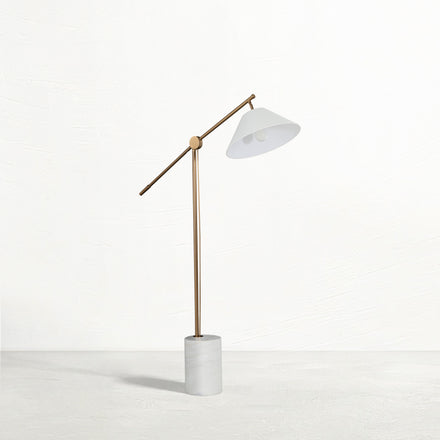 The Estelle Floor Lamp combines modern elegance with timeless materials to create a striking statement piece. Featuring a feather white linen shade that softly diffuses light, this lamp is supported by an antique brass-finished frame, exuding warmth and sophistication. Its sturdy white marble base adds a luxurious touch while ensuring stability. Perfect for reading nooks, living rooms, or bedrooms, the Estelle Floor Lamp seamlessly blends style and functionality, enhancing any interior with its refined design.