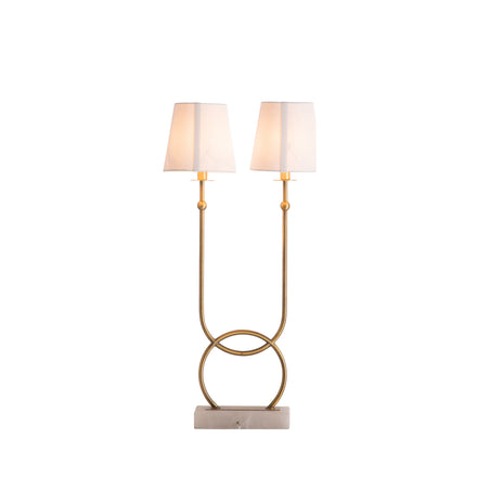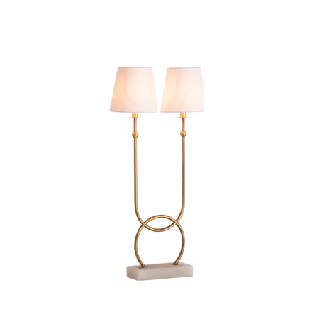Introducing the Mayfield Table Lamp, a striking piece that effortlessly combines modern elegance with timeless materials. The lamp's stem is finished in a matte antique brass, offering a warm and sophisticated look, while the base is expertly carved from natural alabaster, adding a touch of luxury and organic beauty. Topped with feather white linen shades, this lamp provides soft, diffused lighting that enhances any space. Ideal for use in living rooms, hallways, or offices, the Mayfield Table Lamp is perfect for those who appreciate refined design and quality craftsmanship.
