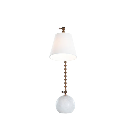 - Natural alabaster ball base adds refined elegance and subtle contrast to the brass stem