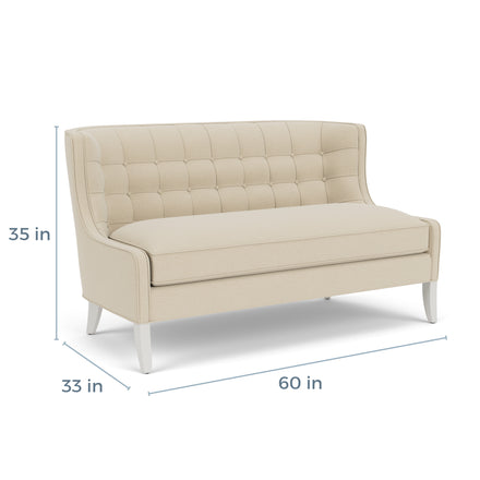 The Cotswold Settee presents a harmonious blend of classical style and modern comfort, all handcrafted with pride in North Carolina. It features a hand-tufted back that exudes elegance and provides excellent support, while the single bench seat cushion offers an uninterrupted canvas of comfort. This settee is a testament to traditional craftsmanship, designed to be a timeless addition to any space seeking a touch of sophistication and charm.