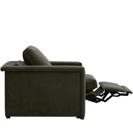 The Ledge Incliner combines sleek architectural design with advanced comfort technology. With the push of a button, this power-operated incliner gently reclines—tilting the back and extending the footrest for a smooth, effortless lounging experience. Unlike a traditional recliner, the incliner stays stationary, meaning it does not need extra wall clearance or move away from the wall as it reclines—making it ideal for tighter spaces or a clean, tailored look. The chair’s built-in USB port adds modern convenience, allowing you to charge your devices while you relax. Fully and tightly upholstered for a refined silhouette, the Ledge features plush, sink-in seat and back cushions, while the ledge-like arms and back introduce a distinctive architectural element that elevates its overall form. Available in a wide range of fabrics, with additional options in Gabby retail stores.