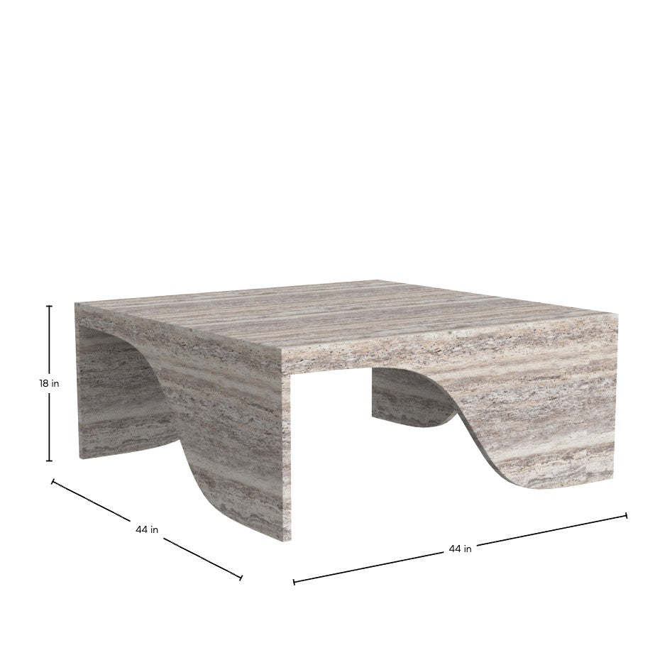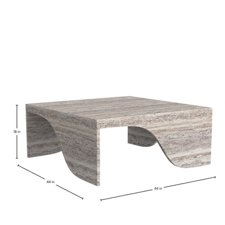 Ondine Travertine Square Waterfall Coffee Table - 4 in. W x 18 in. H