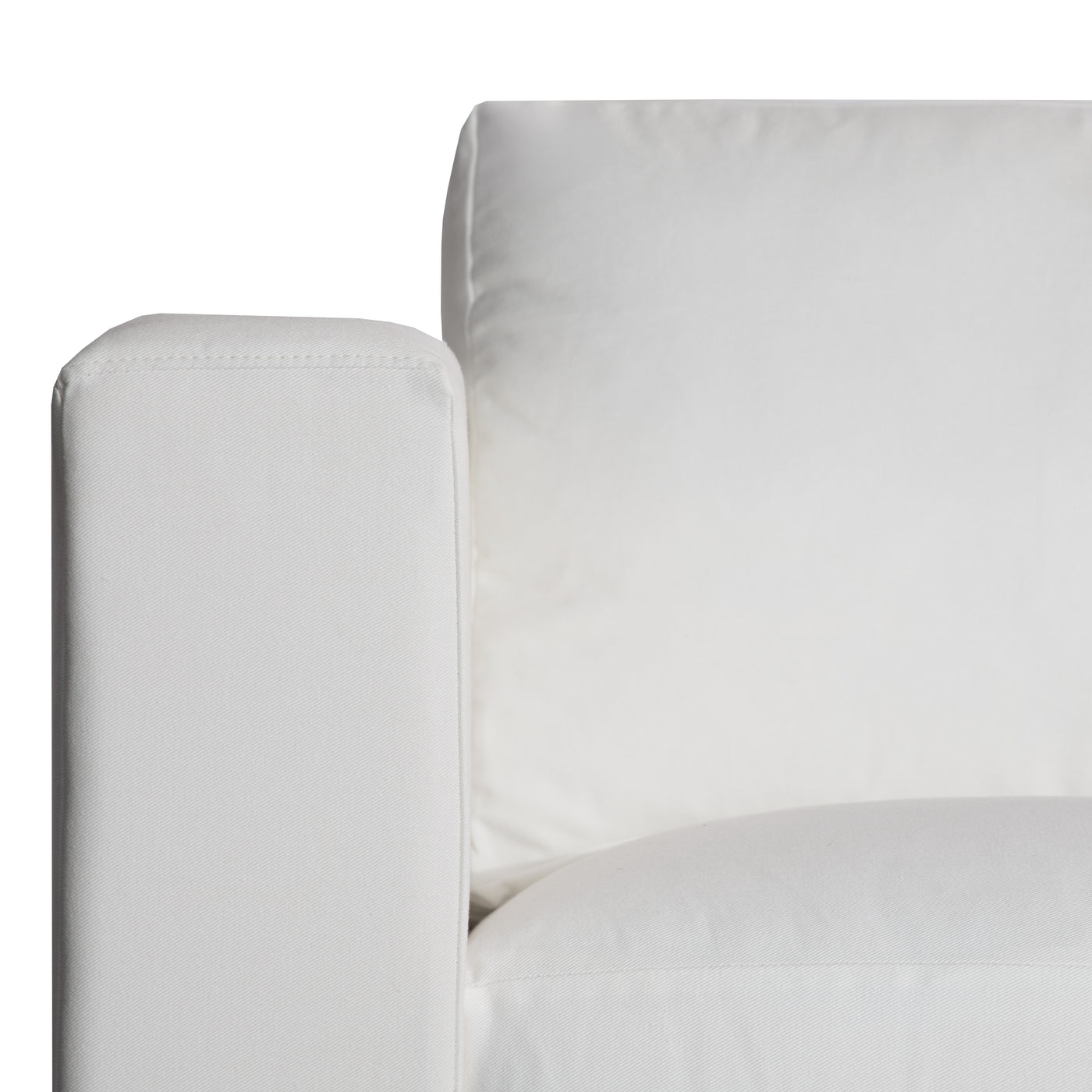 - Clean, squared arms and simple silhouettes deliver a versatile, timeless look.