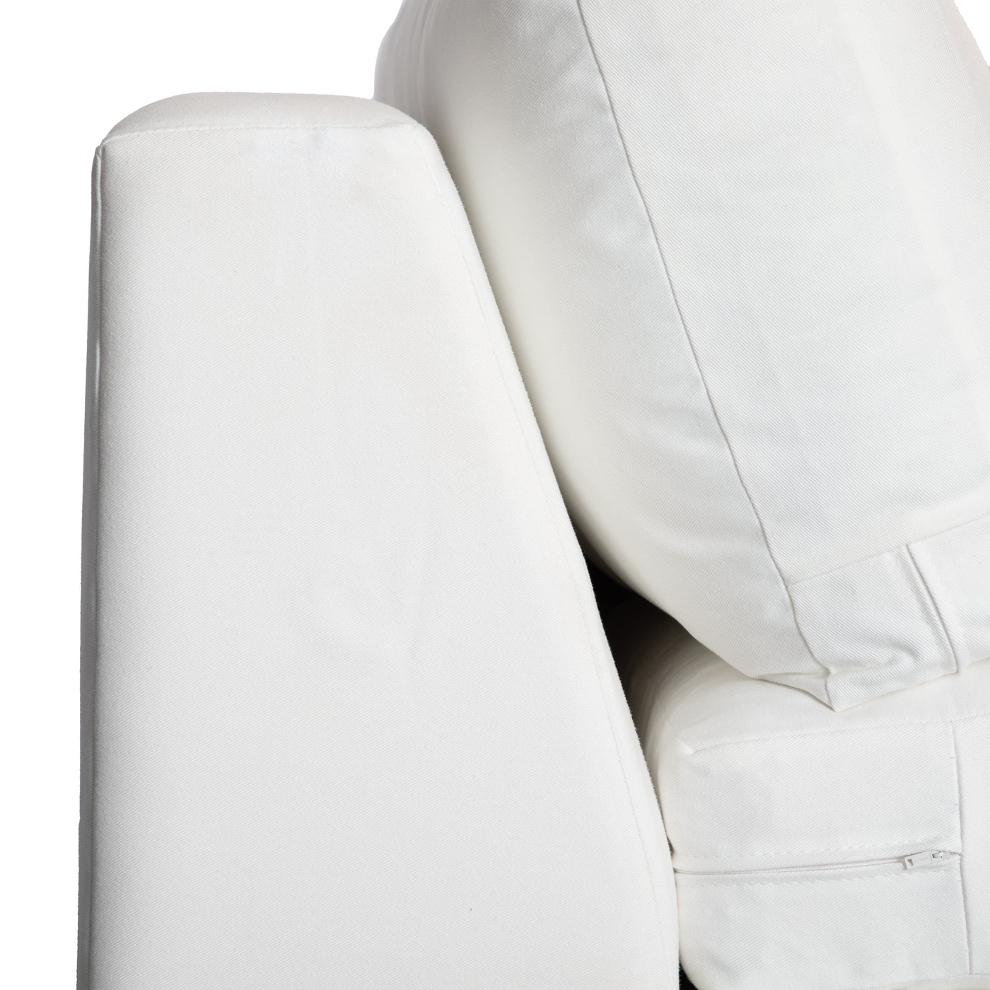 - Clean, squared arms and simple silhouettes deliver a versatile, timeless look.