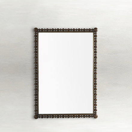 The Beau Mirror - Dark has a knobby frame of intermingled orb and diamond shapes giving it a textural presence in your space. Made of Ash wood, this version gets it's name from the antique brown finish with a hint of patina. The style and finish on the dark brown mirror embody the best that transitional style has to offer.