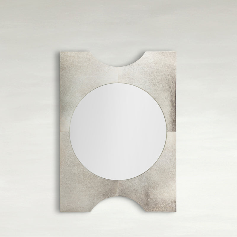 The Oakley Mirror offers a transitional design with decorative potential for both traditional and contemporary settings. Its natural ivory hide frame gives the clean mirror a rustic and textured contrast to create a sophisticated look that enhances any room's décor. Perfect for entryways, living areas, or bedrooms, the Oakley Mirror adds a touch of elegance and refinement to your space. Its versatile style makes it a timeless addition to your home, providing both functionality and aesthetic appeal. This mirror can be hung vertical or horizontal for optimal use.