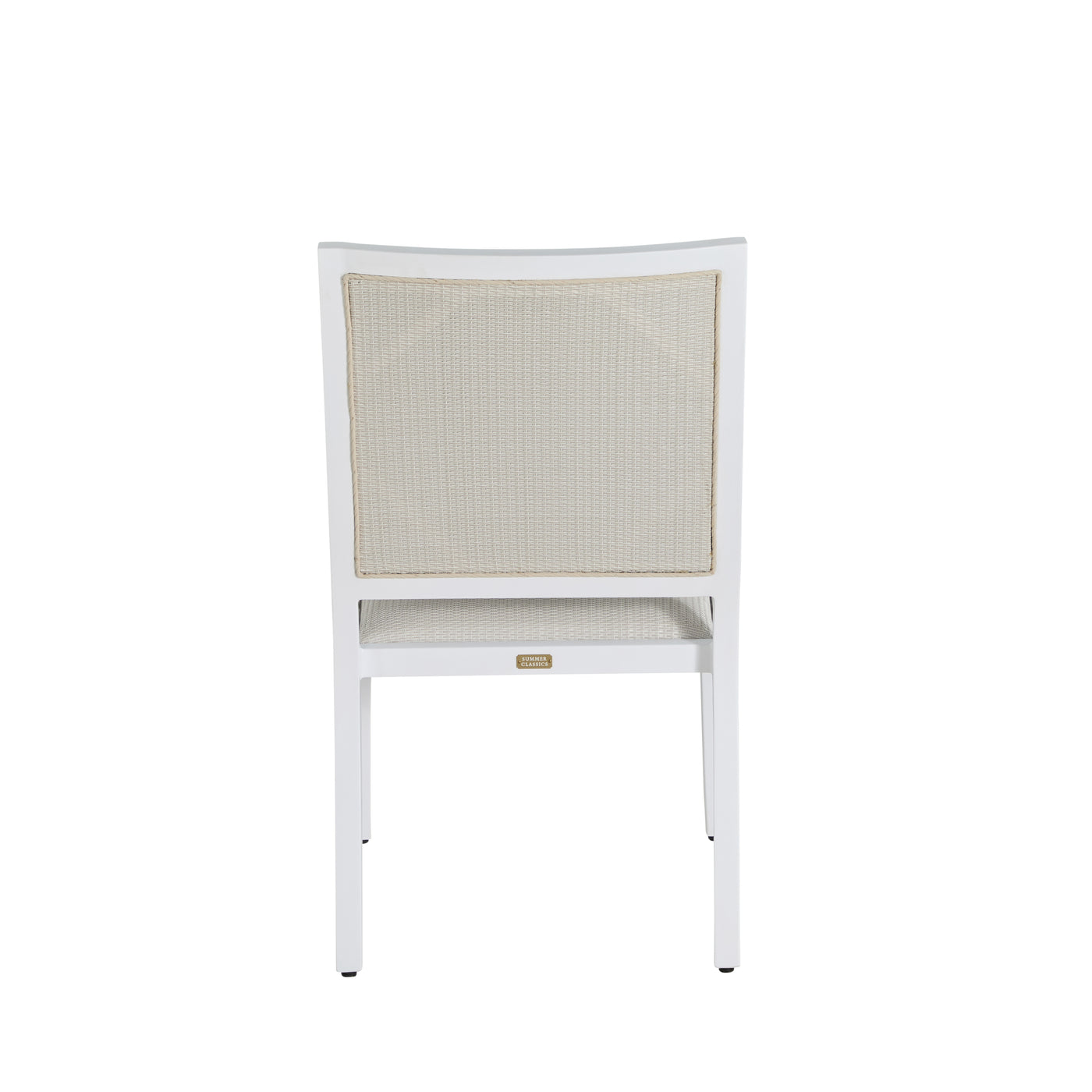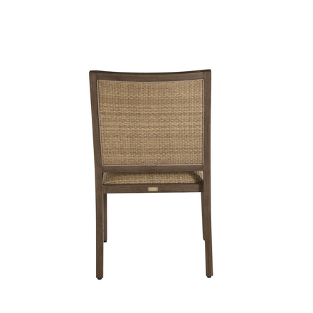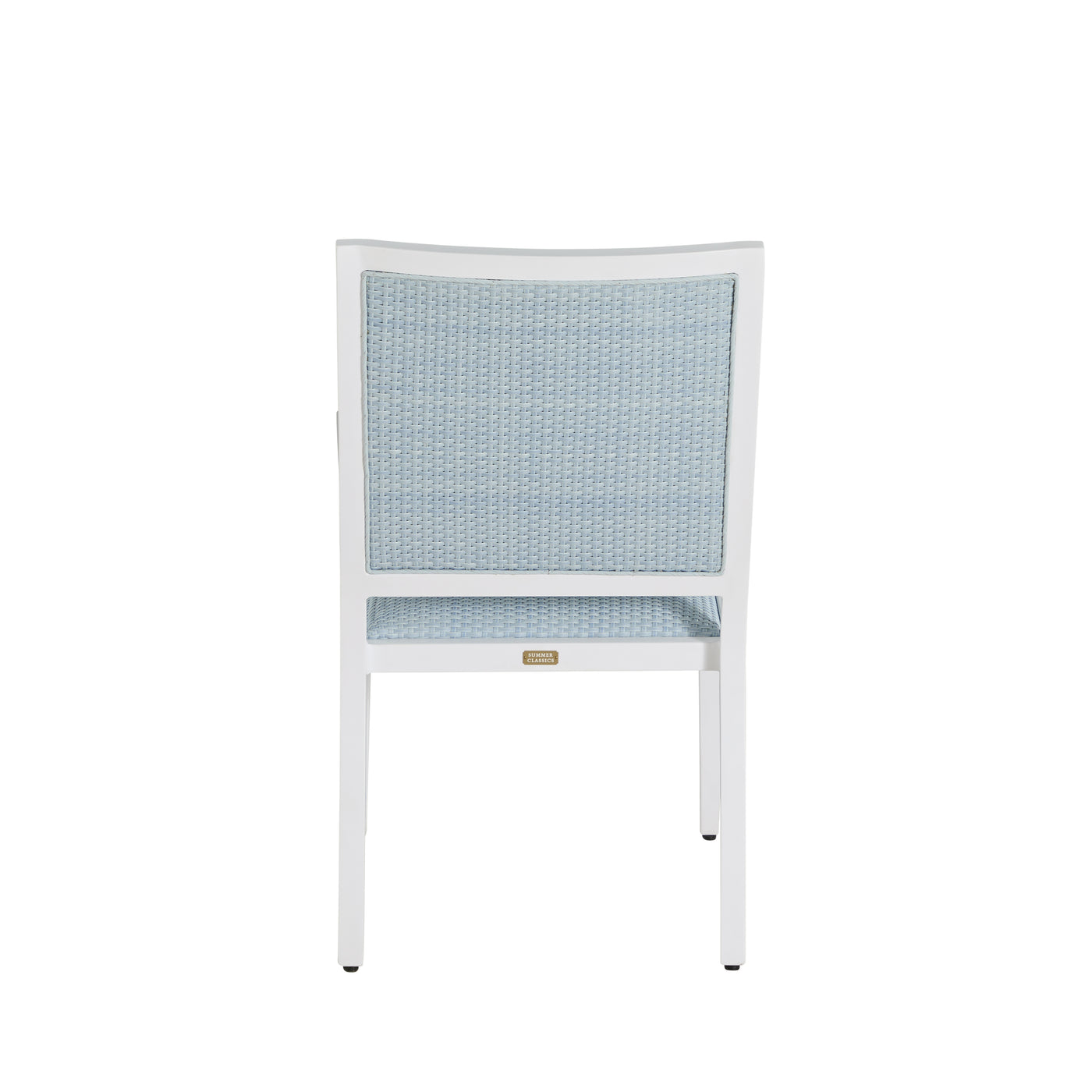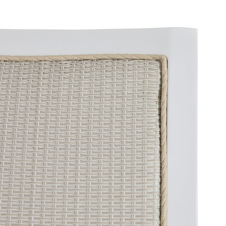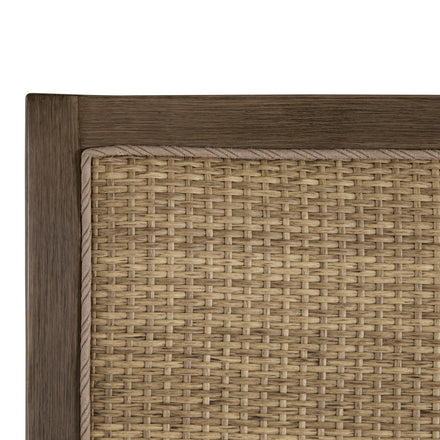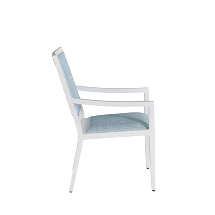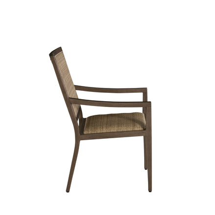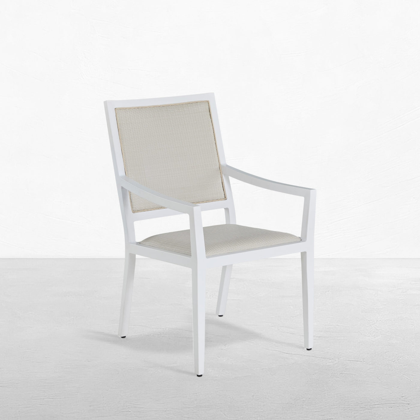 The Grand Bermuda Arm Chair features an exceptionally weather-resistant woven seat and back crafted from N-Dura™ resin wicker for long-lasting beauty and durability. The hand-welded wrought aluminum frame highlights the slight ergonomical slope of the armrests and straight modern lines of the legs. Featuring a versatile design, this dining chair pairs with many of our different outdoor dining tables, as well as other collections. The seating is made with reticulated foam, making this interior cushioned seat comfortable for the alfresco meals.