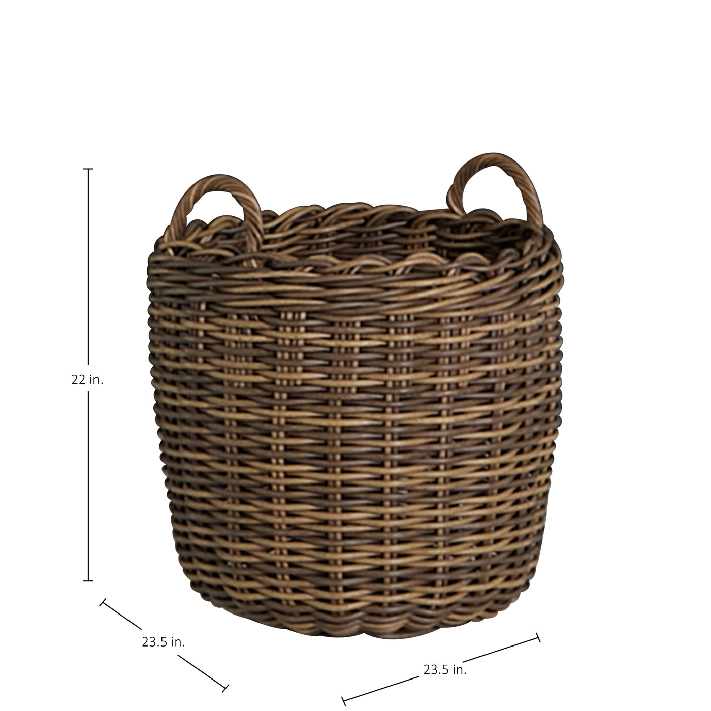 Compact and versatile, the Medium Woven Wicker Outdoor Basket brings handcrafted appeal to outdoor living spaces. Made with our proprietary N-Dura™ resin wicker, it withstands the elements while maintaining its natural, multi-tonal beauty. Ideal for holding rolled towels, garden tools, or as a stylish planter for flowers, it offers endless possibilities for functional décor. Its durable construction and refined texture make it a perfect companion to our outdoor seating and accent collections.