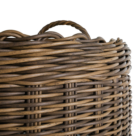 Designed for both style and function, the Extra Large Woven Wicker Outdoor Basket offers generous storage with timeless appeal. Handwoven from our exclusive N-Dura™ resin wicker, it delivers the look and texture of natural materials while providing unmatched durability. Built with UV resistance integrated into every strand, this basket resists fading, cracking, and peeling even after years of outdoor use. Its substantial size makes it ideal for storing cushions, throws, or creating a stunning planter filled with seasonal blooms. The rich, multi-tonal weave complements many of our outdoor furniture collections, bringing cohesive, elevated style to any space.
