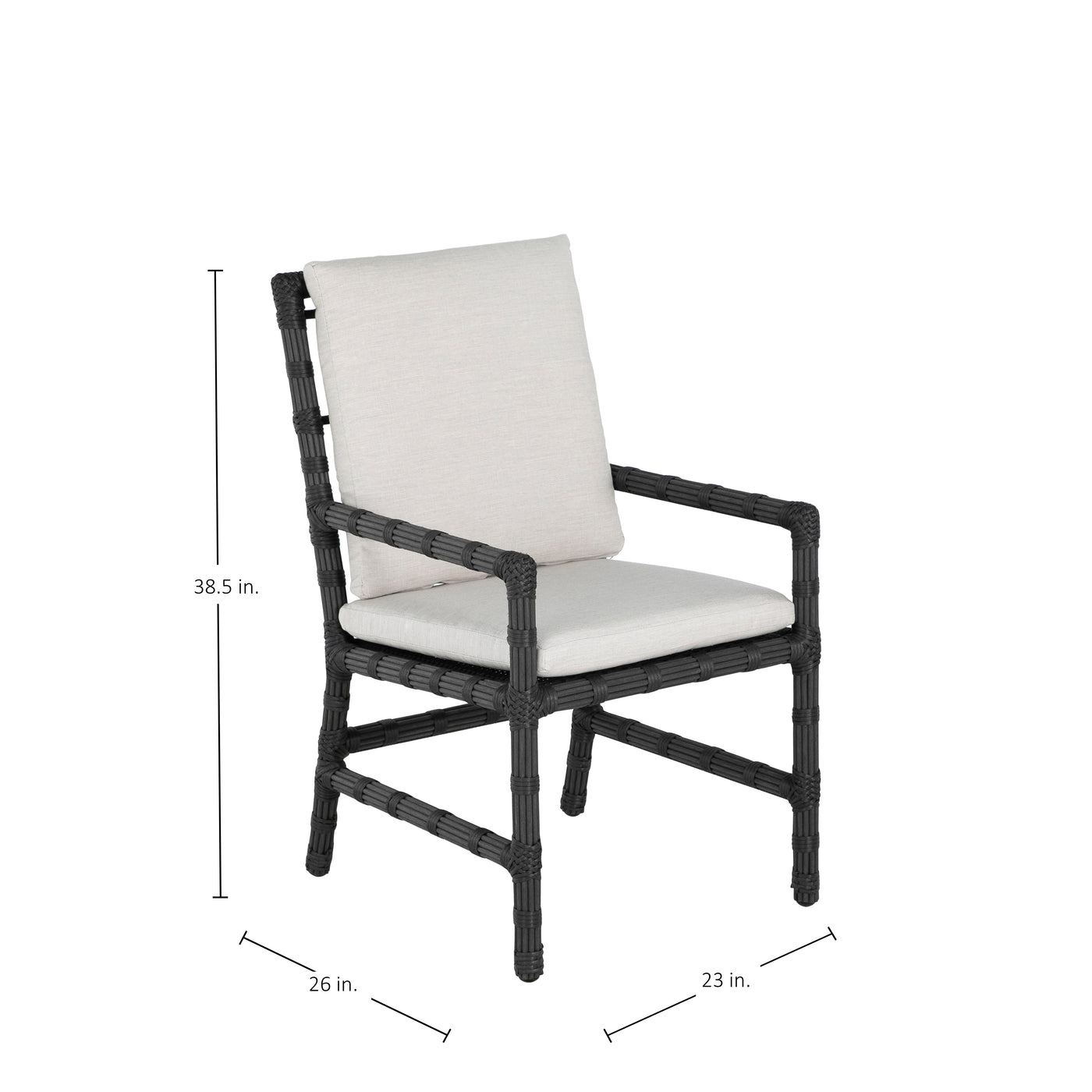 The Newport Woven Arm Chair, with its mid-century vintage rattan charm, is an exquisite addition to your dining experience. Handwoven with UV-resistant N-Duraâ„¢ resin wicker, this chair promises enduring beauty and is built to withstand outdoor elements year-round. This item is designed to be enjoyed either with or without a cushion. Please designate your choice in the below "Select a Cushion" dropdown.