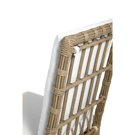 The Newport Woven Side Chair, with its mid-century vintage rattan charm, is an exquisite addition to your dining experience. Handwoven with UV-resistant N-Duraâ„¢ resin wicker, this chair promises enduring beauty and is built to withstand outdoor elements year-round. This item is designed to be enjoyed either with or without a cushion. Please designate your choice in the below "Select a Cushion" dropdown.