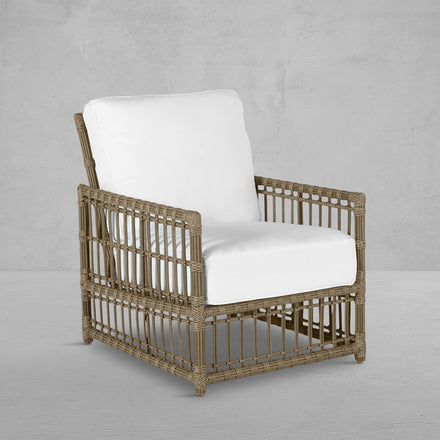 The Newport Woven Lounge Chair's style is a modern twist on traditional wicker furniture, offering a blend of classic charm and contemporary lines. The design features a boxy silhouette with a structured, open-weave pattern, creating a light yet sturdy form. The clean, straight lines are softened by the plush cushion, adding a contemporary comfort to the naturalistic wicker texture. This lounge chair is an inviting addition to any patio, sunroom, or casual relaxation space, updated with the durability of modern materials, featuring UV-resistant N-Duraâ„¢ resin wicker. This makes the chair not just a beautiful addition to your outdoor space, but also a long-lasting one, able to resist fading and wear over time.