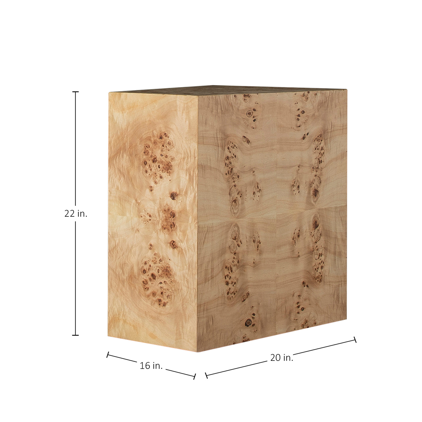 Alistair Maple Burl Rectangle Side Table - 16 in. W x 22 in. H