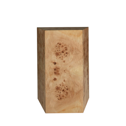 The Alistair Side Table epitomizes understated elegance with its simple shape and prized natural material. The side table is made from bird's eye maple, which is known for its small knots and irregularities creating a rare and beautiful pattern highly sought-after for luxury and high-end craftmanship. The burl pattern adds rich texture to its simple, angular shape. Ideal for versatile use in any space, this minimalist design merges warmth with modernity, enhancing your home with both style and functionality. As a product featuring natural materials, each item boasts its own variations and unique characteristics, to be celebrated as a testament to its individuality—no two pieces are exactly alike.