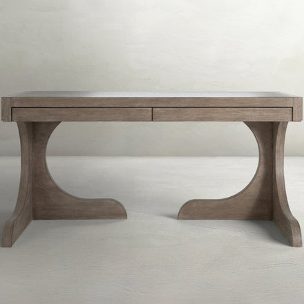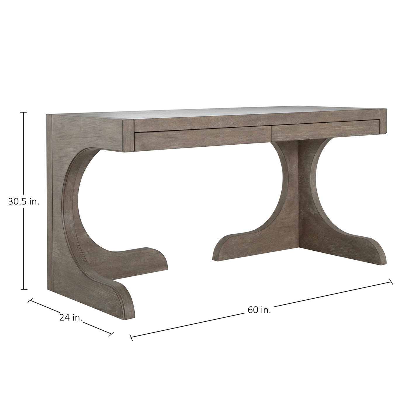 Carmen Oak Wood Curved Legs Desk - 2 Drawers, Brushed Gray