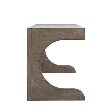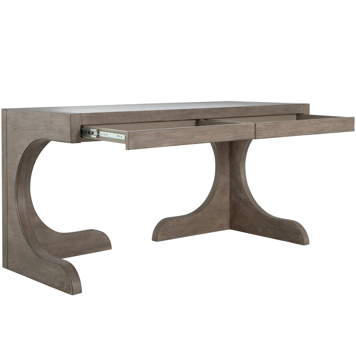 The Carmen Desk redefines the celebration of artistic curves, with the modern twist of functionality. The desk's standout feature is its unique base, which consists of gracefully curved legs that form a visually appealing silhouette, adding both stability and elegance to the piece. The top surface is sleek and spacious, providing ample room for work or display, while two discreet drawers offer convenient storage for office essentials. Finished in a Brushed Gray, the desk highlights the natural grain and texture, blending seamlessly with various decor styles. This combination of functional design and artistic elements makes the desk a versatile and attractive choice for any setting.