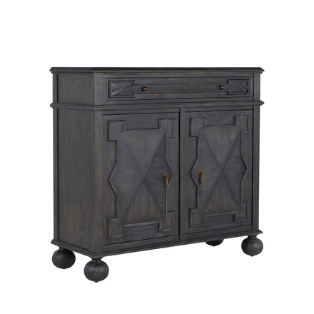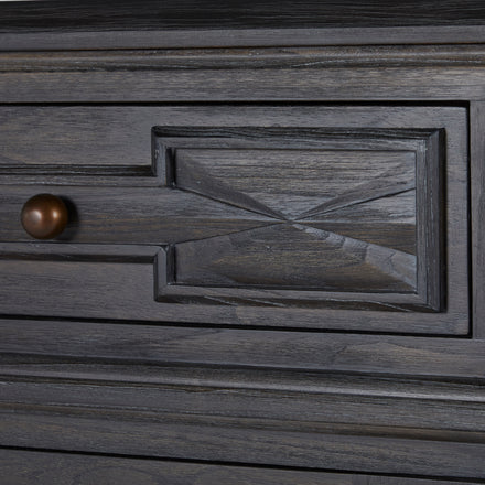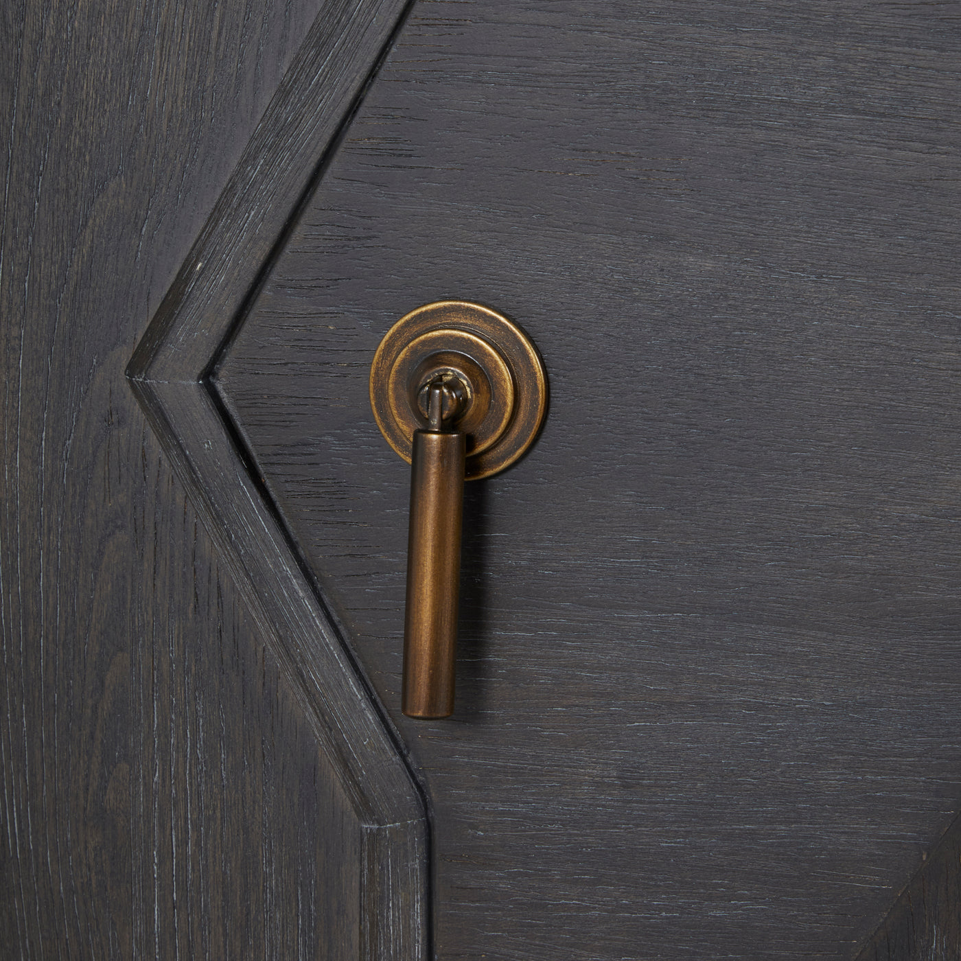 The Ezekiel Cabinet combines traditional charm with a modern twist, showcasing a geometric, faceted front design that exudes sophistication and intrigue. Its classic round bun feet add a timeless finish, making this piece a versatile addition to any decor. Crafted from mindi wood, it is finished in a cerused brown and complemented by antique bronze hardware. The Ezekiel Cabinet not only offers generous storage space but also serves as a statement piece that enhances the aesthetic appeal of any room. It also comes in a cerused white finish for a more coastal feel.