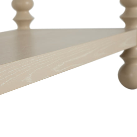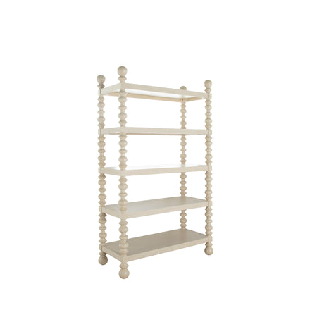 The Natalie Bookcase is a charming and artistic addition to any room, offering both style and functionality. Crafted with ash wood, oak veneer and meticulous attention to detail, this bookcase features five spacious shelves that provide ample storage and display space for books, decor items, and more. The standout design elements are it's beautifully turned frame, which adds an intriguing visual interest. The bookcase is finished in a ceruse white hue that enhances its versatile appeal, making it suitable for a variety of interior styles, from traditional to contemporary. The topmost shelf is adorned with decorative finials, adding an extra layer of elegance and completing the bookcase's refined look. The Natalie Bookcase is perfect for living rooms, home offices, or bedrooms, offering a stylish way to organize and showcase your favorite items.