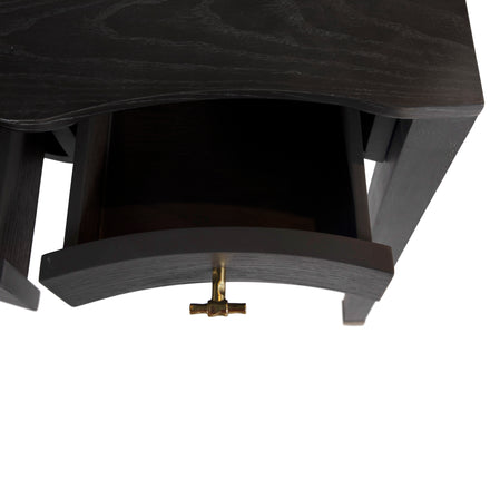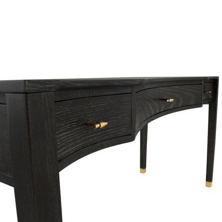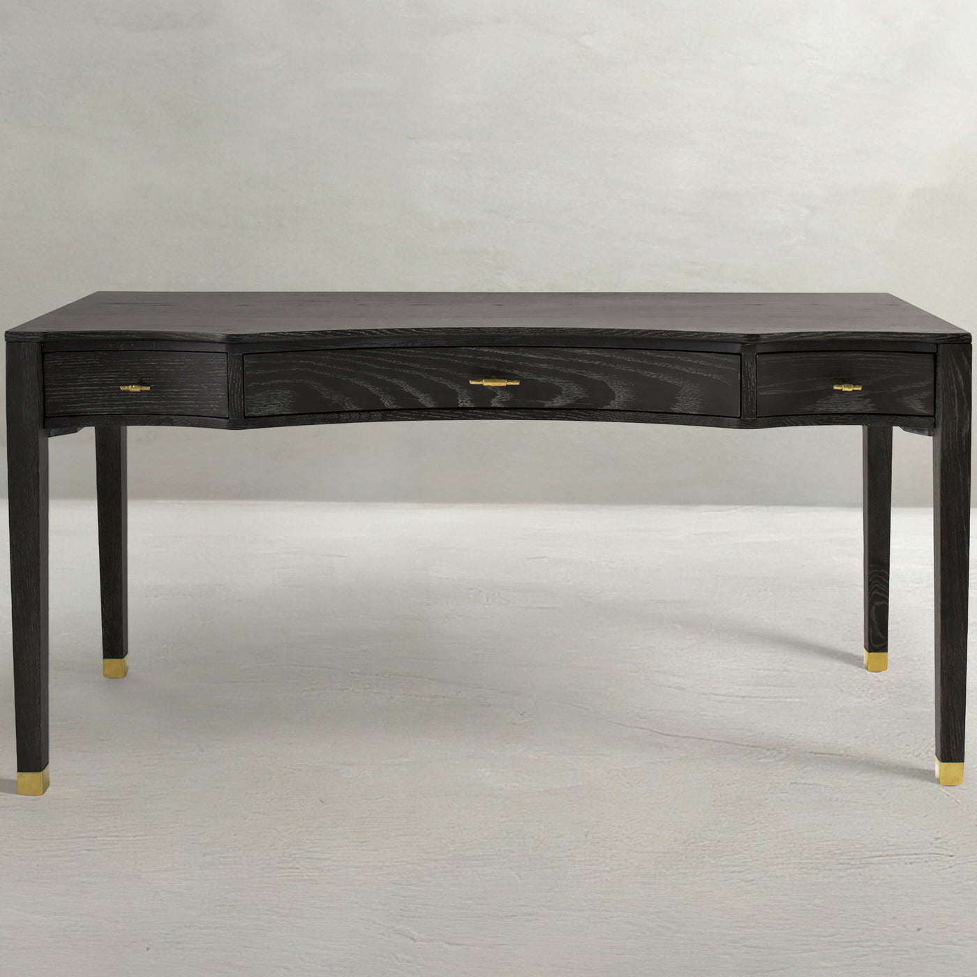 Nathan Oak Iron Scalloped Desk - 3 Drawers, Cerused Dark Gray
