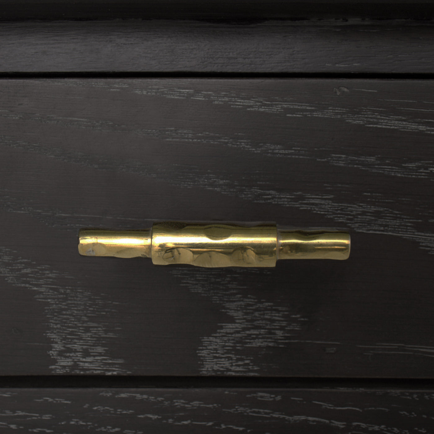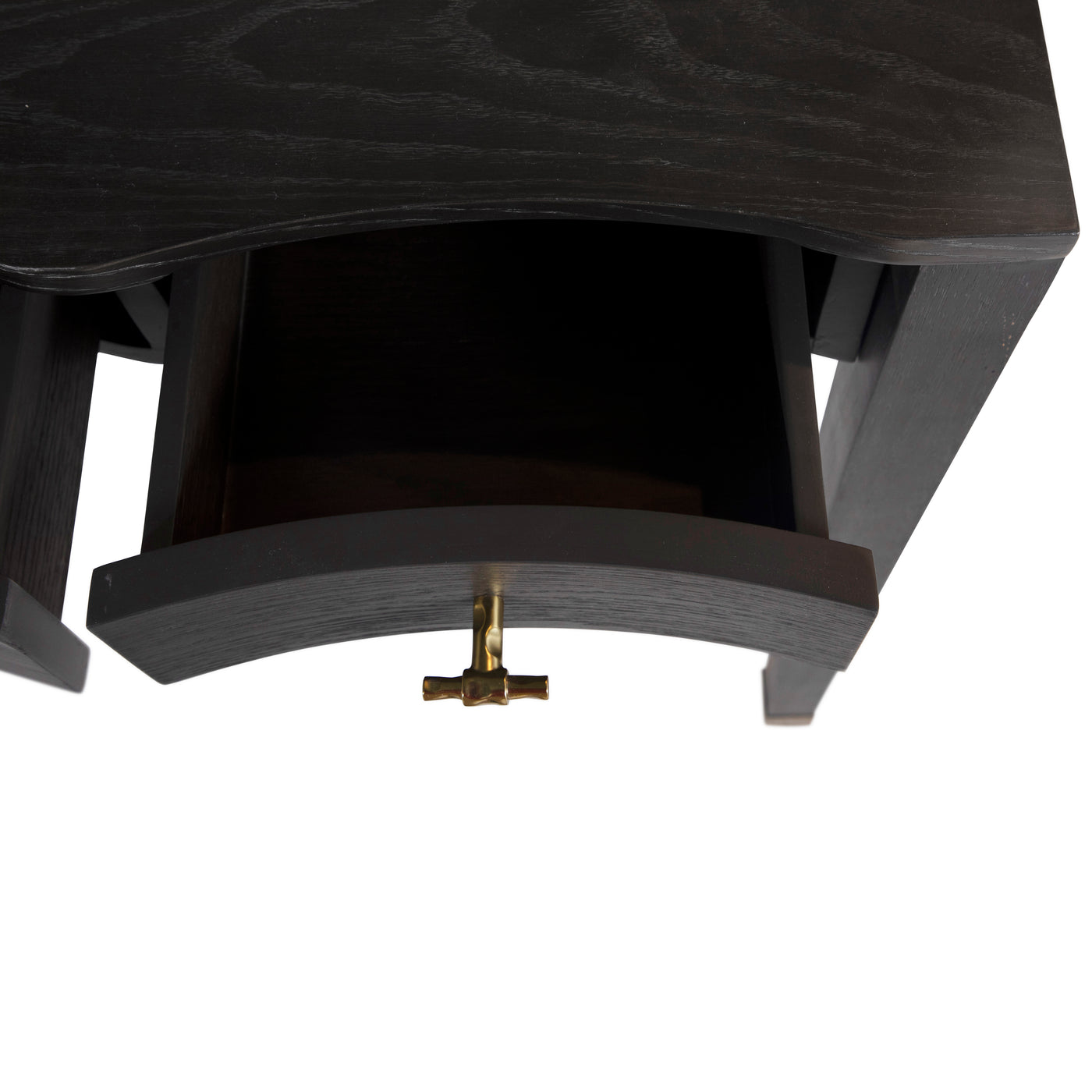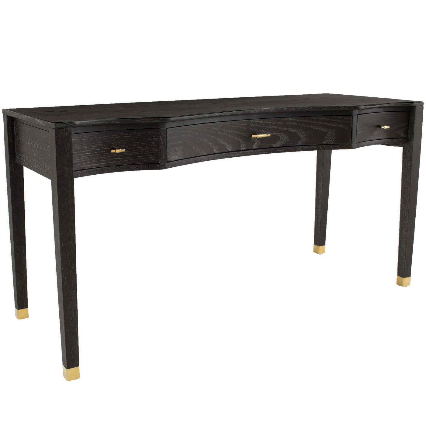 The Nathan Desk features a scalloped front and unique hammered hardware on three drawers, creating a stunning and modern workspace. Its elegant combination of dark Gray cerused oak and stainless gold makes this desk a standout piece in any home office or study area. The Nathan Desk provides ample storage and a spacious work surface, ensuring both style and functionality. Enhance your productivity and décor with this beautifully designed desk that offers a perfect blend of elegance and practicality.
