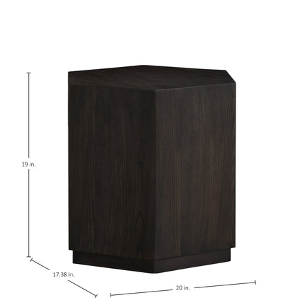 The Olympic Large Table stands 19 inches high, offering a bold yet refined presence that elevates any seating arrangement. Crafted from solid ash wood in a rich Midnight finish, its hexagonal form exudes modern geometry with timeless appeal. The dark, smooth planes highlight the natural grain of the wood, adding depth and quiet sophistication. Perfect beside a sofa or lounge chair, the Olympic Large Table serves as both a functional surface and a sculptural focal point within a thoughtfully designed space.