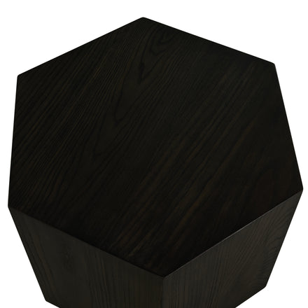 At 16.5 inches high, the Olympic Small Table brings the same striking hexagonal silhouette to a slightly lower profile, ideal for layering or use beside lower seating. Made of ash wood with a sleek Midnight finish, it celebrates natural texture through minimalist form. When paired with the larger version, the two create a dynamic interplay of height and proportion—a modern statement in shape, balance, and craftsmanship. Elegant on its own or as part of a nesting composition, the Olympic Small Table embodies understated luxury.
