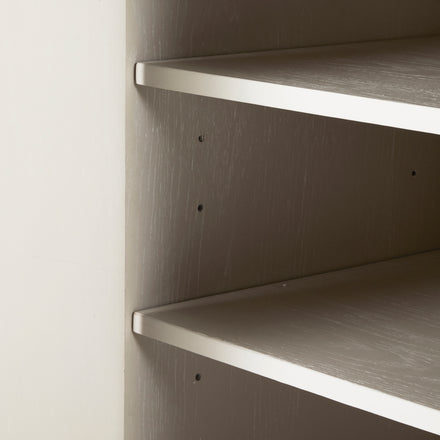 Brand Gabby Certifications and compliance Prop 65 Lead Country of origin IDN Contract viable Yes Finish family White Hardware finish Stainless Champagne Inner frame material Wood Joinery type Dowel/Block Screw & Glue|Mortise and Tenon Material Iron, Oak Veneer Number of shelves 4 Shelf material Wood Shelves included Yes Storage type Shelves Wood species Oak
