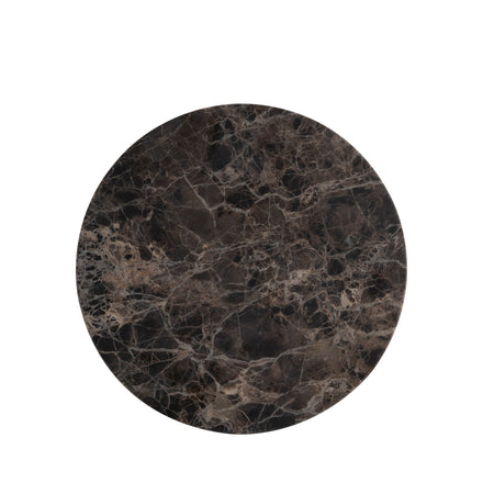 Rich materials and timeless craftsmanship define the Washoe Drink Table. Its circular silhouette flows seamlessly from the marble top to the base, wrapped entirely in luxurious top-grain dark brown leather. The hand-stitched detailing along the sides highlights the artistry behind its construction, while the Dark Emperador marble top introduces a striking contrast with its deep tones and natural veining. Compact yet undeniably sophisticated, the Washoe Drink Table adds warmth, texture, and refinement to any seating area—perfect beside a lounge chair or sofa.