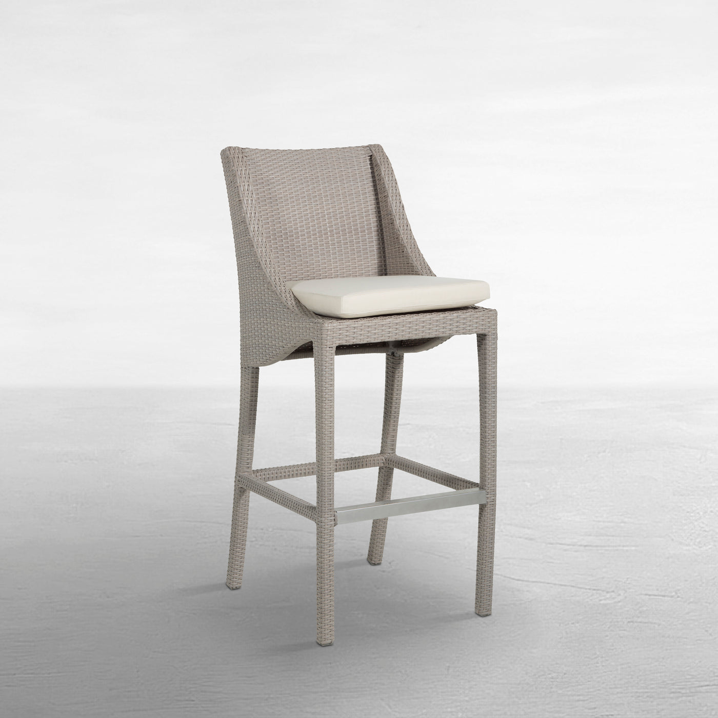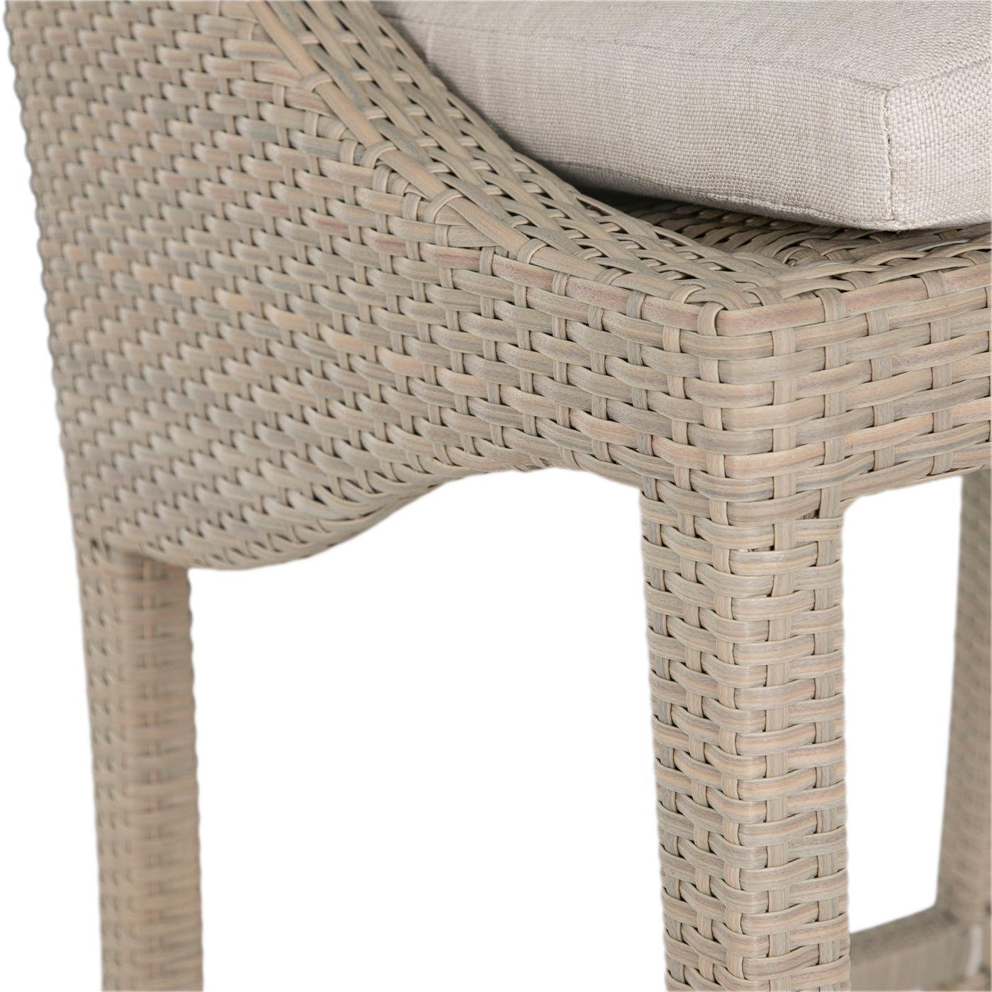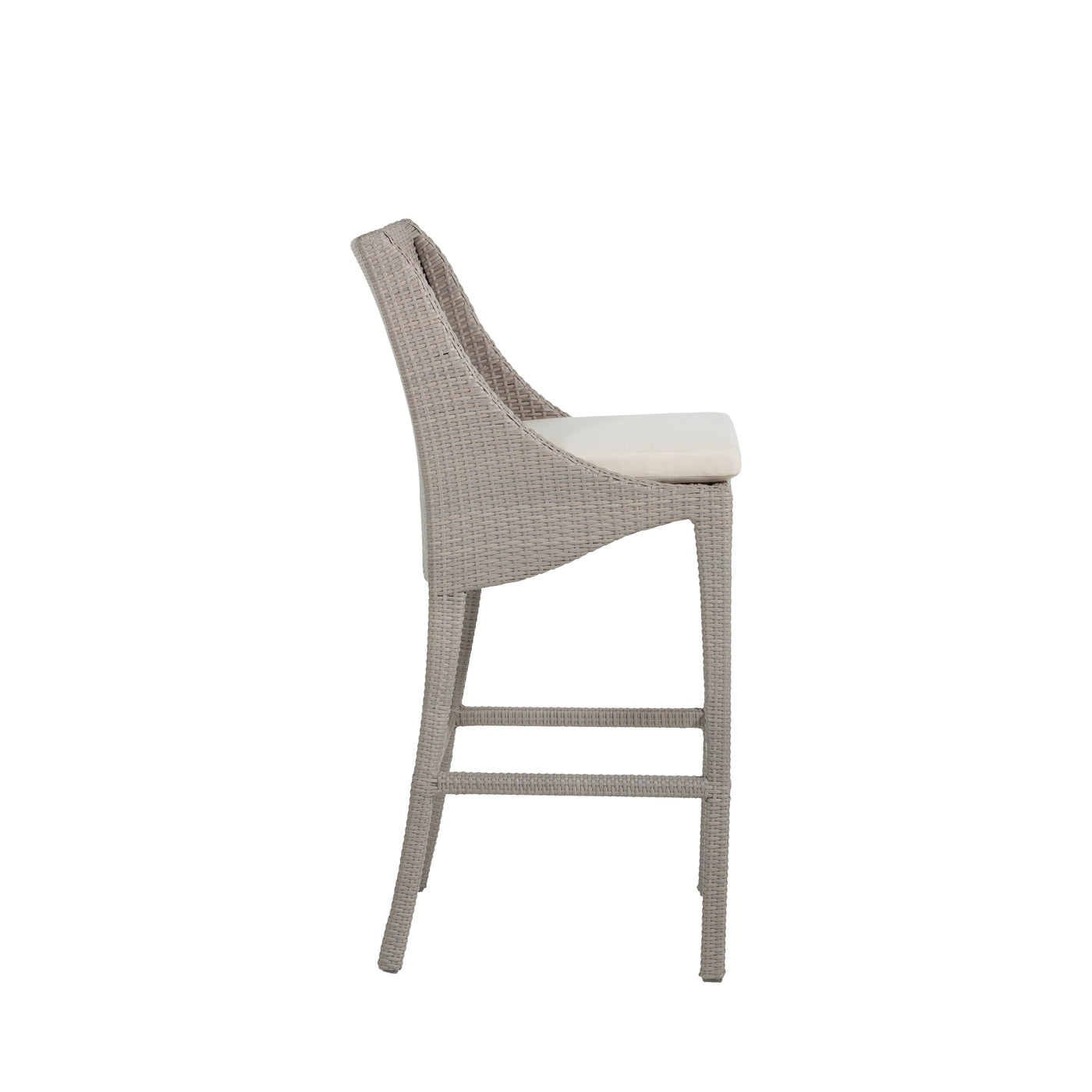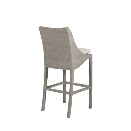 The Athena Bar Stool brings timeless beauty to outdoor spaces. This wicker chair features an aluminum frame completely covered by weather-resistant N-Duraâ„¢ resin wicker for durability and strength. Elegantly styled with plushly cushioned seating. The 30" seat height is suitable for most bar tables.