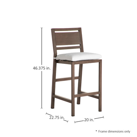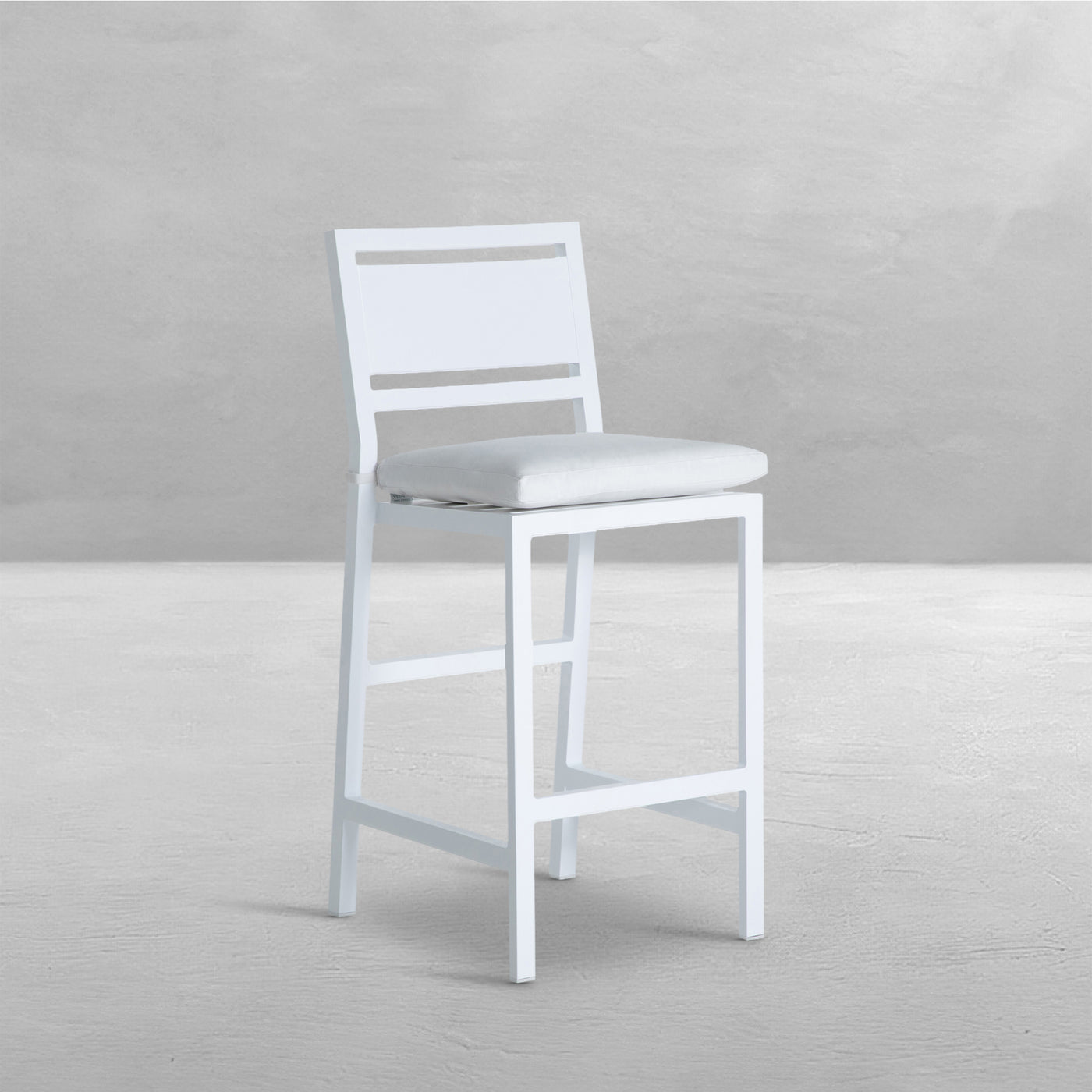 The Avondale Aluminum Bar Stool, with its architectural-grade powder finish and mid-century contours, offers a sleek addition to any modern outdoor bar area. Crafted with precision, it features a durable, corrosion-resistant aluminum frame, ensuring longevity and ease of maintenance. The clean lines and minimalist design provide timeless appeal, while the plush cushion promises comfort for leisurely alfresco engagements. Enrich your outdoor entertainment space with sophistication and unmatched value while enjoying a comfortable perch ideal for savoring a meal or ice-cold beverage. This item is designed to be enjoyed either with or without a cushion. Please designate your choice in the below "Select a Cushion" dropdown.
