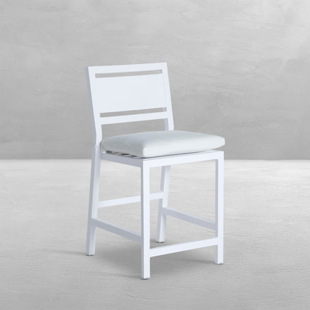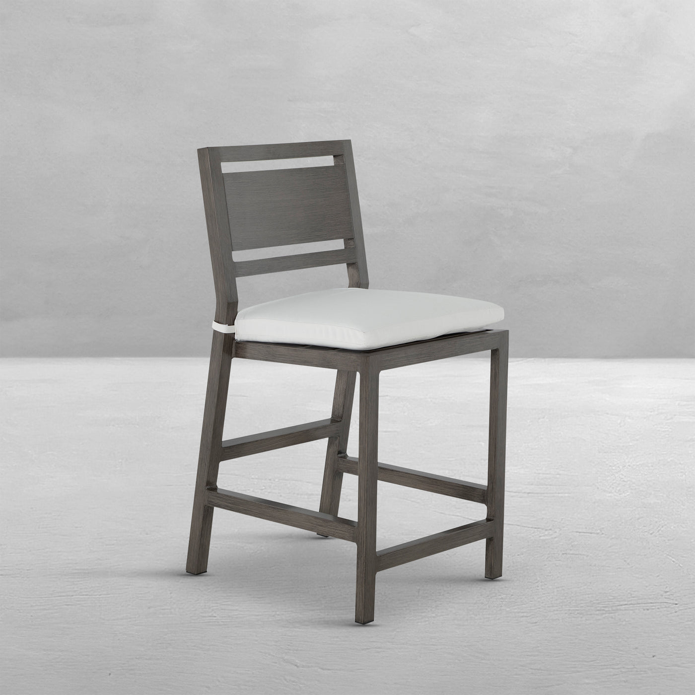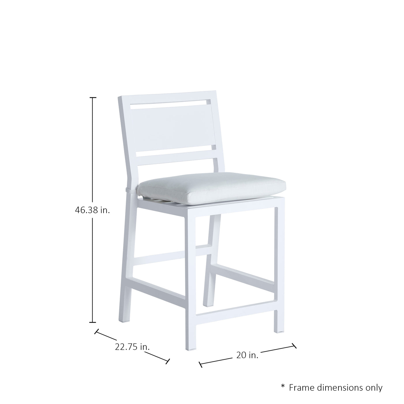 The Avondale Aluminum Counter Stool, with its architectural-grade powder finish and mid-century contours, offers a sleek addition to any modern outdoor bar area. Crafted with precision, it features a durable, corrosion-resistant aluminum frame, ensuring longevity and ease of maintenance. The clean lines and minimalist design provide timeless appeal, while the plush cushion promises comfort for leisurely alfresco engagements. Enrich your outdoor entertainment space with sophistication and unmatched value while enjoying a comfortable perch ideal for savoring a meal or ice-cold beverage. This item is designed to be enjoyed either with or without a cushion. Please designate your choice in the below "Select a Cushion" dropdown.
