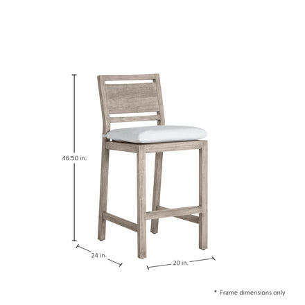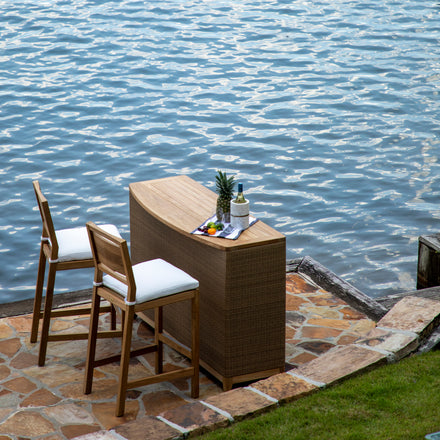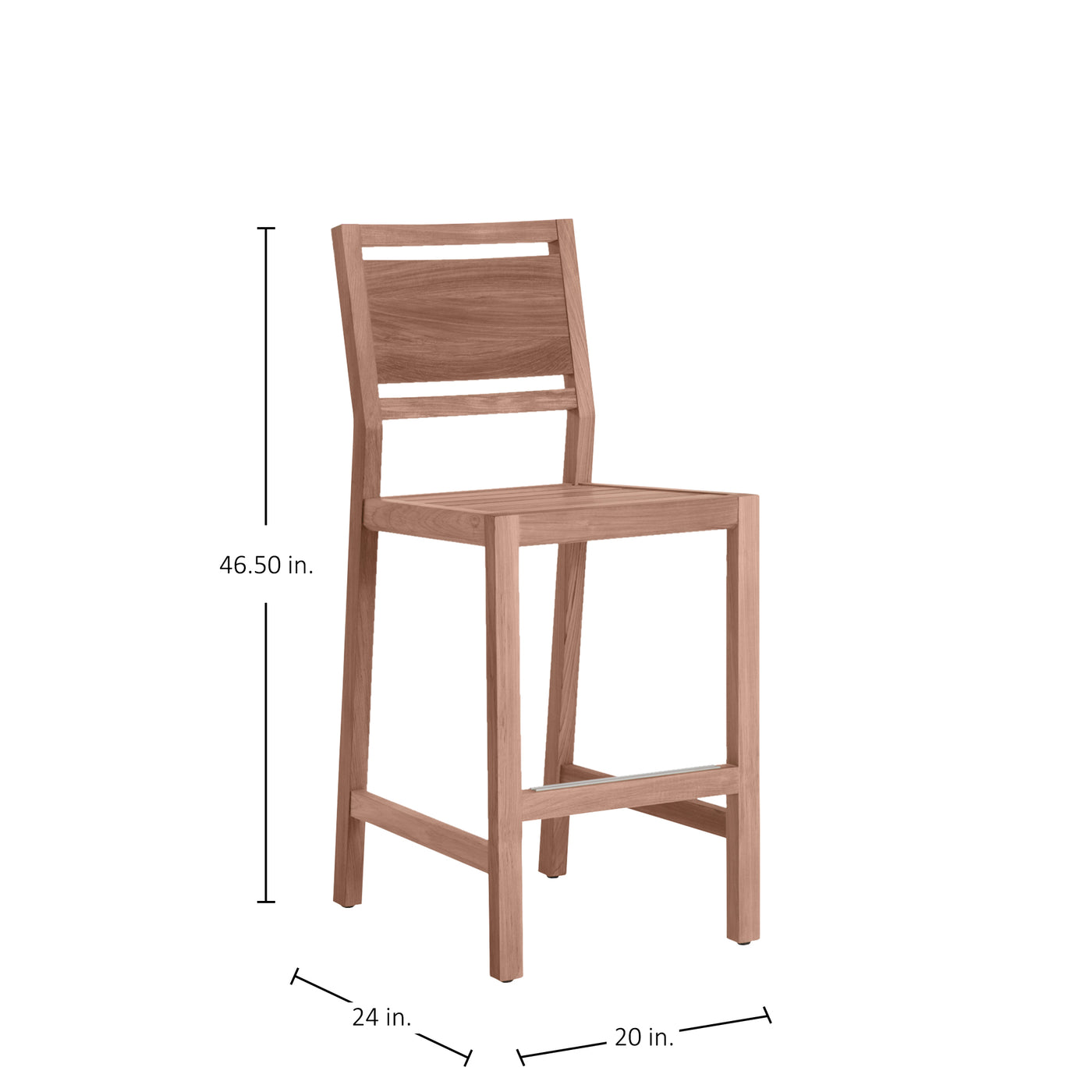 The Avondale Teak Bar Stool, with its refined mid-century silhouette and robust Indonesian Teak, offers ease in terms of elevating one's outdoor space. The teak’s natural hardiness provides an unwavering companion for outdoor entertaining. Certified by SVLK and FSC, each stool underscores our pledge to responsible sourcing and eco-friendly practices. Select this bar stool as more than an accessory; it's a durable statement of style and an investment in ecological mindfulness. This item is designed to be enjoyed either with or without a cushion. Please designate your choice in the below "Select a Cushion" dropdown.