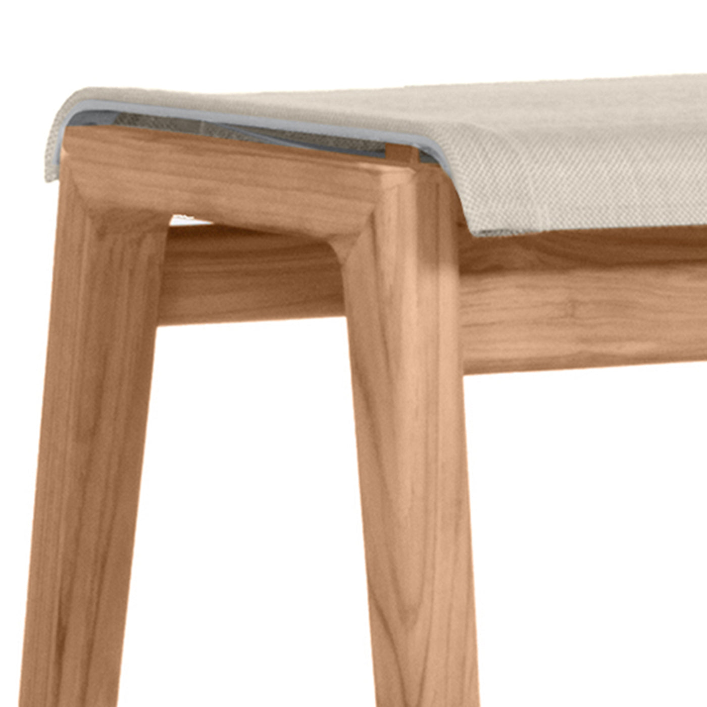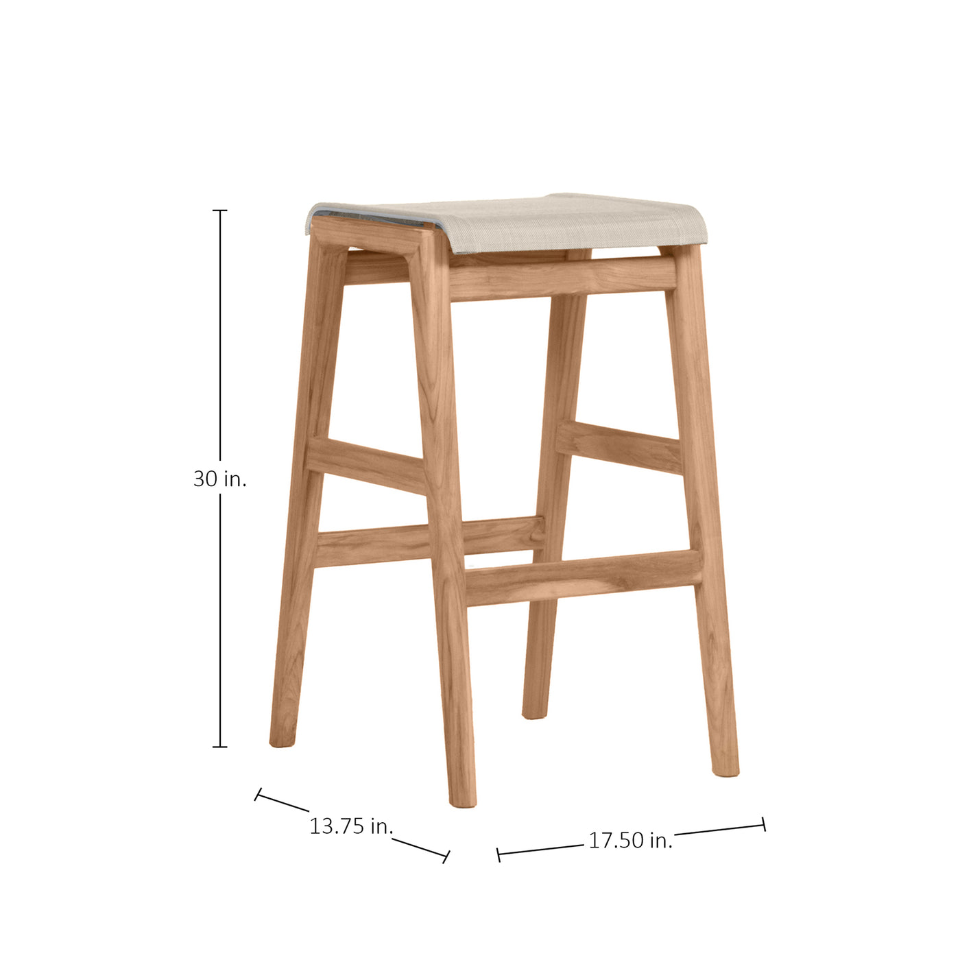 The Coast Teak 30" Backless Stool celebrates simplicity and sustainability. It's crafted from Batyline outdoor performance sling and plantation-grown, FSC-certified teak, renowned for its durability and natural weather resistance. Its smooth finish and clean lines embody contemporary style, while the sturdy construction ensures stability and longevity. Perfect for outdoor bars or as additional seating, this stool offers both function and a sleek addition to any modern outdoor space.