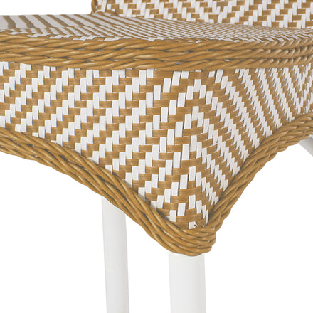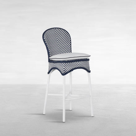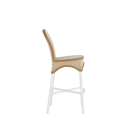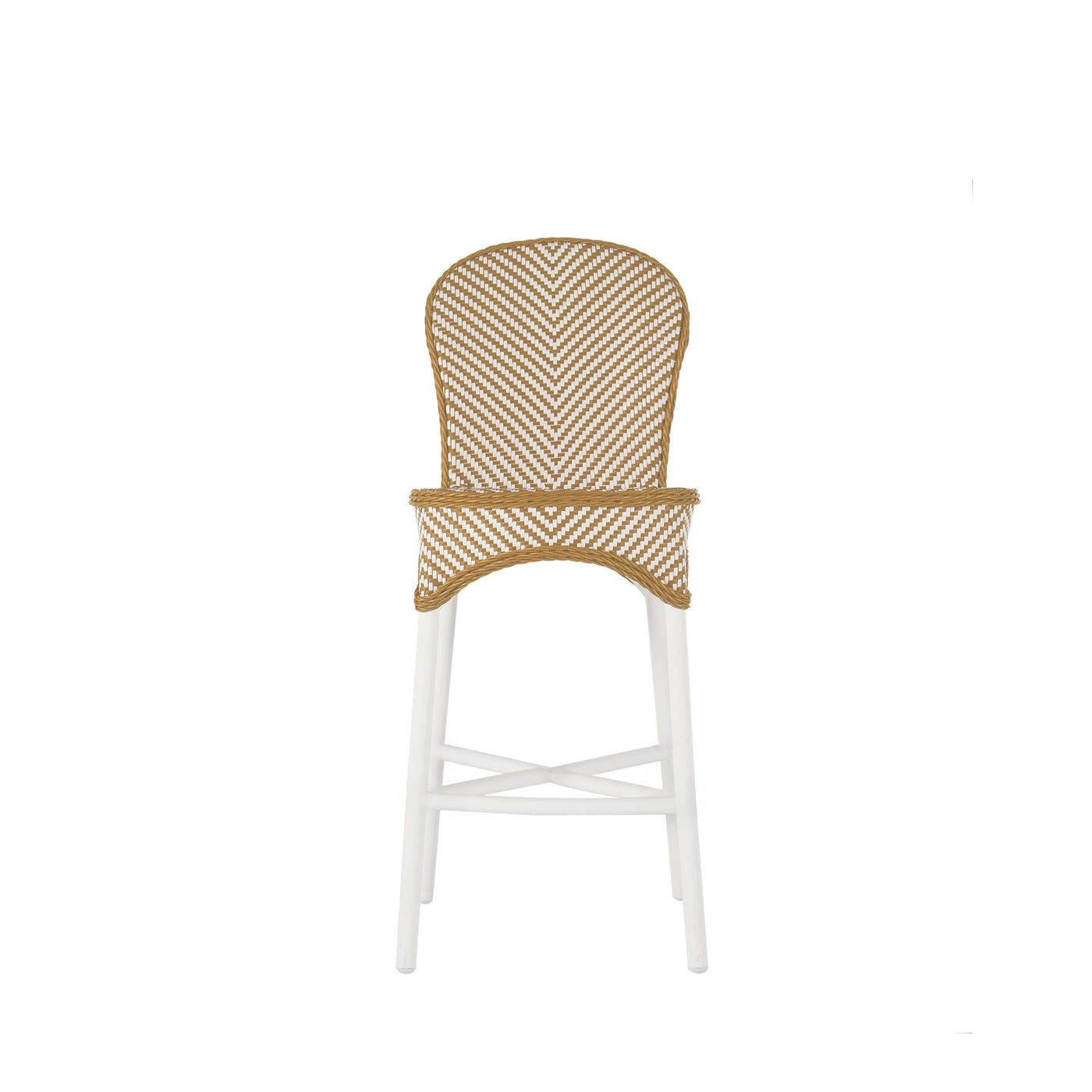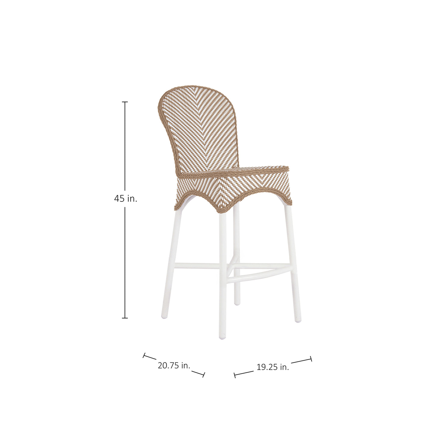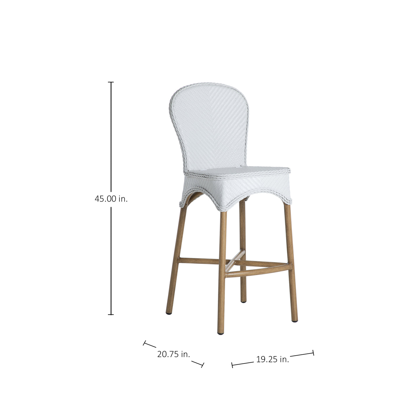 The Savoy Bar Stool, with its chic design brings the quintessential French café vibe to your space. Its beautifully handwoven N-Dura™ resin wicker and wrought aluminum frame enhances its fresh aesthetic, perfect for creating unforgettable social spots. It's built with UV resistance that keeps its color vibrant for up to five years. The resilient multi-tonal wicker and triple-coated wrought aluminum ensure this charming bar stool withstands the elements and frequent use, making it a lasting addition to your poolside retreat or patio. This item is designed to be enjoyed either with or without a cushion. Please designate your choice in the below "Select a Cushion" dropdown.