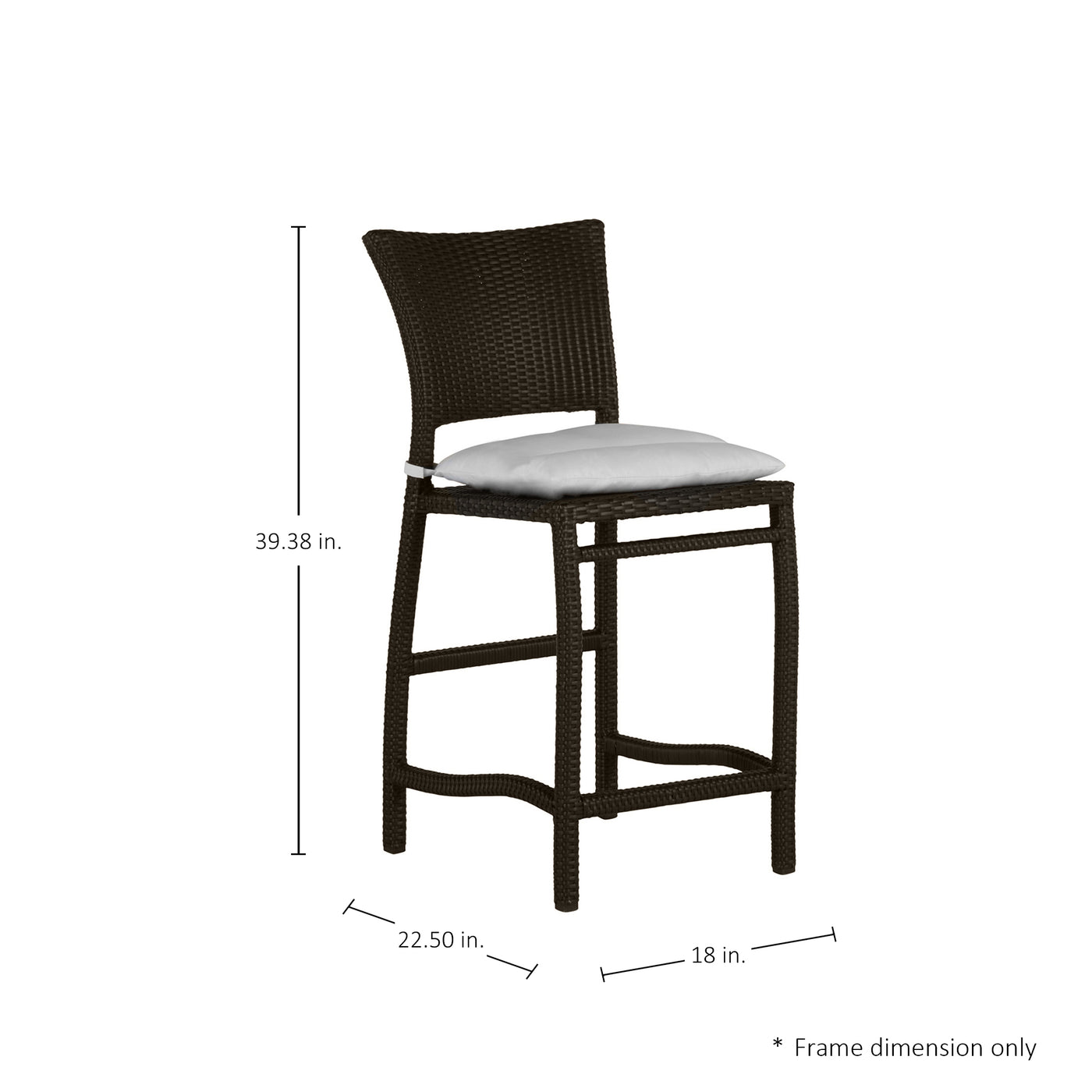 Product depth 22.5" Product height 39.375" Product weight 10 Product width 18" Seat cushion depth 17.5" Seat cushion height 1" Seat cushion width 1" Seat depth 17.5" Seat height 24" Seat height with cushion 25" Seat width 17.75"